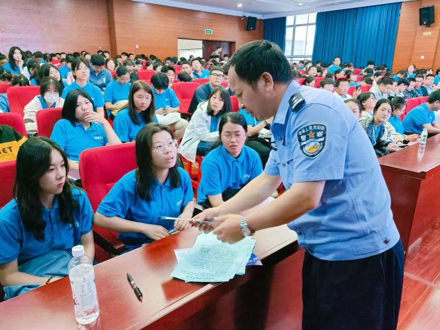 为帮助新生树立安全防范意识,提高安全问题应对能力,9月22日下午,桔子洲派出所陈芳桂警官受邀在化学楼达嘉维康报告厅为我院学子开展安全教育讲座。讲座由新生辅导员唐健清主持。全体2023级新生参加本次讲座。