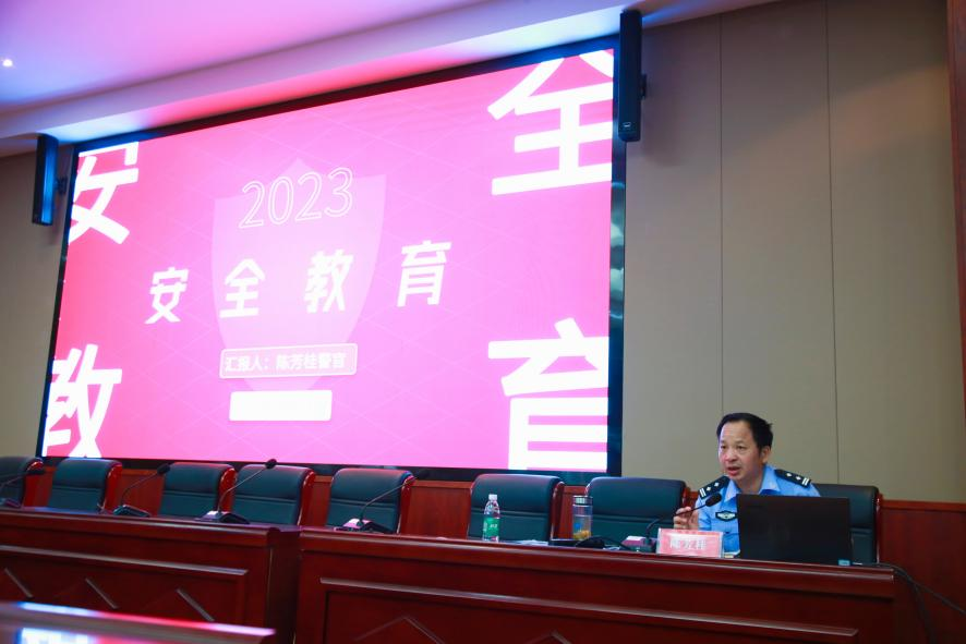 陈芳桂结合实际案例和法律知识,紧紧围绕财产安全、人身安全、消防安全等危及学生安全和权益的问题作了细致讲解。他叮嘱同学们,要自觉遵守交通安全法律法规,增强消防安全意识,禁止在宿舍内使用明火和大功率电器,要做到安全上网、文明上网,自觉抵制不良诱惑,谨防电信诈骗,不给犯罪分子可乘之机。