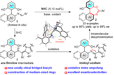 Figure 1:卡宾催化亚胺去对称化构建桥联轴手性联芳基化合物