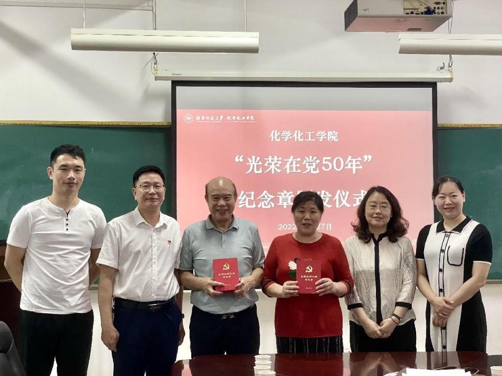 6月27日,伟德国际1949举行“光荣在党50年”纪念章颁发仪式暨离退休党支部主题党日活动。纪念章颁发仪式在206会议室举行,党委书记谭东波、党委副书记段婷、专职组织员梁艳芳、教育部重点实验室专职副主任周子虬出席仪式。仪式由离退休一党支部书记易理国主持。