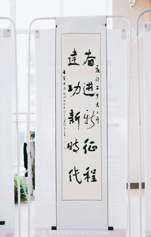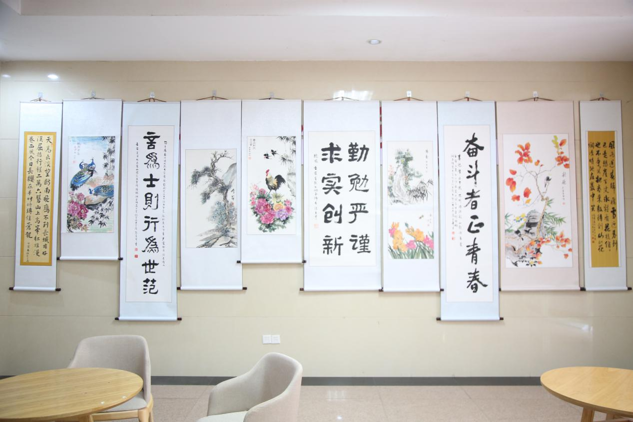 本次艺术作品展,面向全院离退休教师、校友、教师和学生征集作品,共展出作品97件。入展作品种类多样,覆盖楷、行、隶、篆、草等书体,包括水墨、白描等画体,以及摄影、剪纸等作品。
