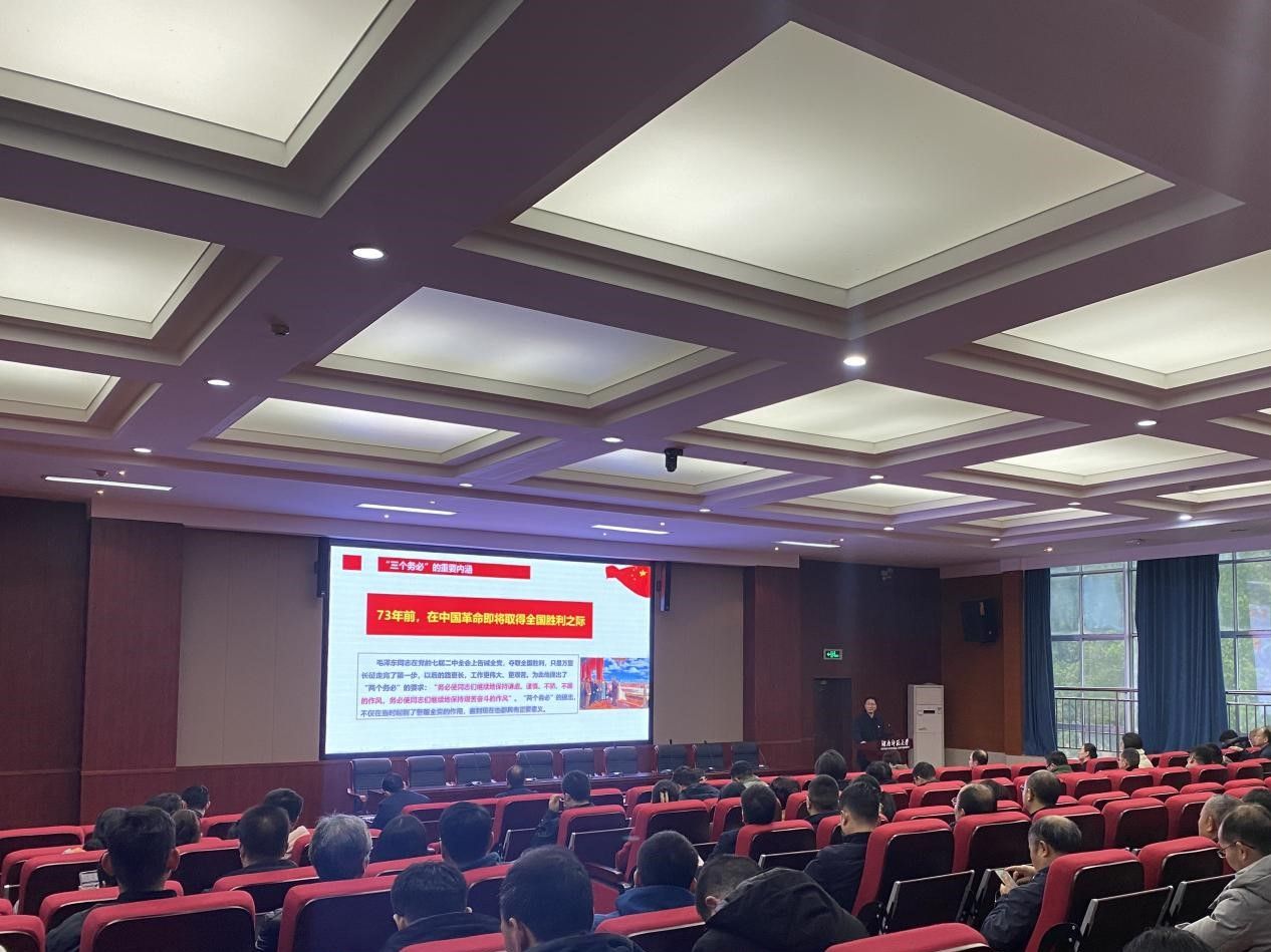 谭东波以“牢记‘三个务必’奋进宏伟目标”为题,为大家讲解关于“三个务必”的重要内涵、重大历史意义,和内在关系,动员全体教职工牢记和践行“三个务必”,谱写伟大事业绚丽华章。