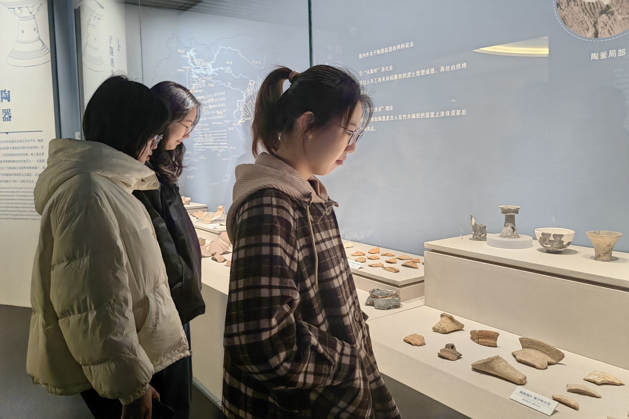 小组成员从西汉到民国时期的瓷器观赏至商代青铜器,这些工艺品不论是独特外形还是绚丽的色彩,亦或是精美的花纹浮雕,无不体现着古时前辈们卓越的智慧和精巧的手艺。不仅如此,首次展出的觥形青铜器也揭示了当时南北社会发展的差异性,让参观者对当时的古人的生产生活以及社会状况有了更进一步的了解。