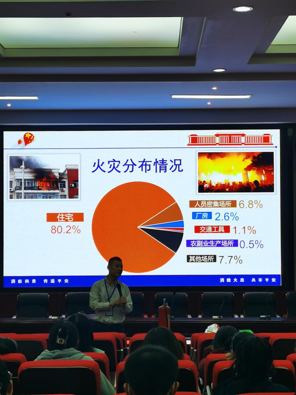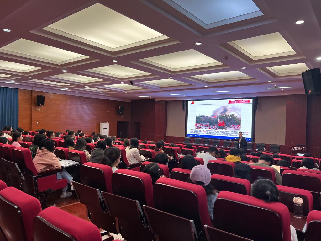 副院长宋春红参加并主持了讲座。本次讲座由长沙市湘安消防公益服务中心李争望教官主讲。李教官通过真实案例和数据,警醒大家要提高防灾抗灾能力,增强安全意识,一旦有事故发生时,最大程度提升自救能力,最大限度减少人员伤亡和财产损失的能力。