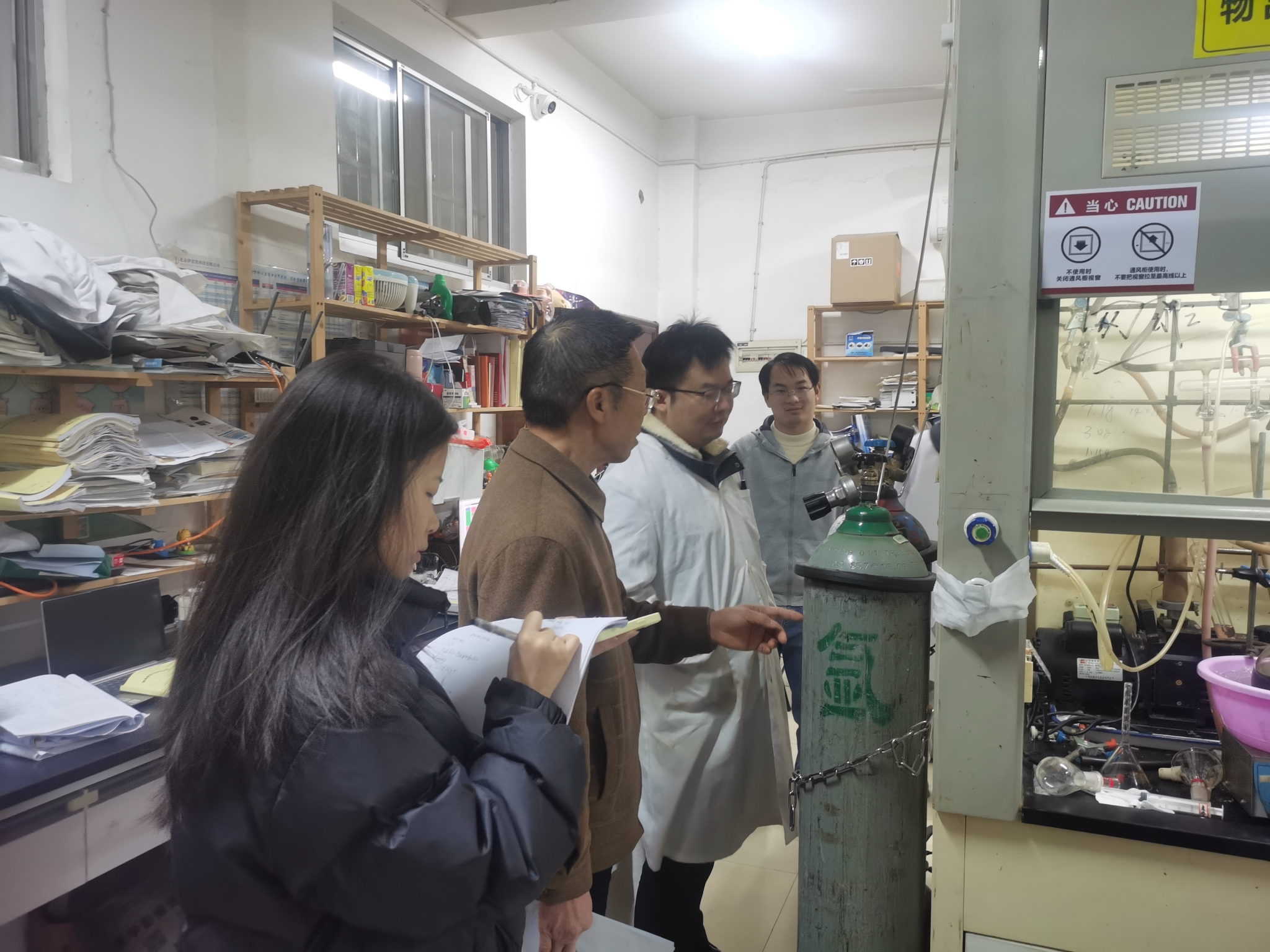 检查组对我院“石化新材料与资源精细利用国家地方联合工程实验室”、“有机功能分子组装与应用校级重点实验室”、“植化单体开发与利用湖南省重点实验室”、“光能转换材料湖南省高校重点实验室”及“化学化工实验教学中心”等4个科研平台和1个教学中心的实验室进行了重点检查。他们在充分肯定了我院实验室安全工作的同时,也对一些细节工作提出了更高的要求。各科研平台要结合自身特色和发展定位消除一切安全隐患,将平台真正建设好。