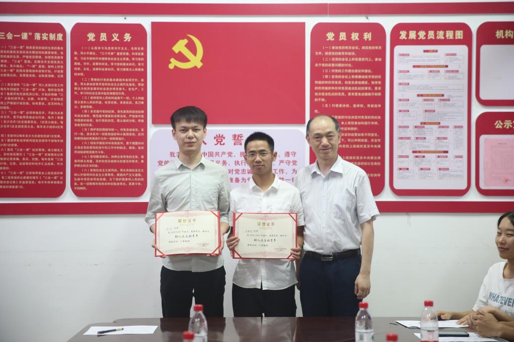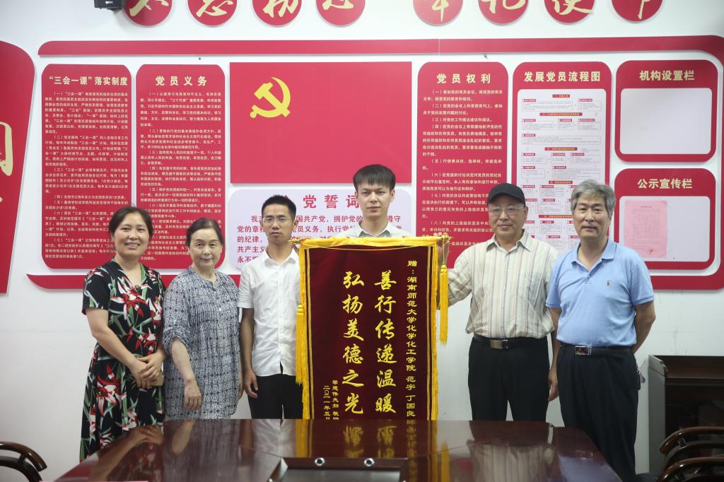 欧阳唯一向大家介绍了两件好人好事,分别是于风江在地铁上救助晕倒路人并将其送往医院救治和范宇、丁国良在岳王亭帮忙搜救受伤老人,展现了化工师生的责任与担当。活动现场,邬建伟夫妇向范宇、丁国良赠送锦旗,对他们助人为乐的义举表示深深的感谢。邬建伟夫妇肯定了伟德国际victor1946良好的校风以及“仁爱精勤”的校训,并指出了祖国的未来需要范宇、丁国良这样有奉献精神的人才。同时,杨震为两位同学颁发证书,肯定了两位同学勇于践行青年使命的精神,呼吁大家铭记建党初心。随后,于风江、范宇、丁国良作为优秀代表发言。于风江希望大家可以不忘初心,牢记使命,成为祖国的栋梁。范宇、丁国良向大家强调了不忘初心,牢记青年身上使命与担当的重要性。
