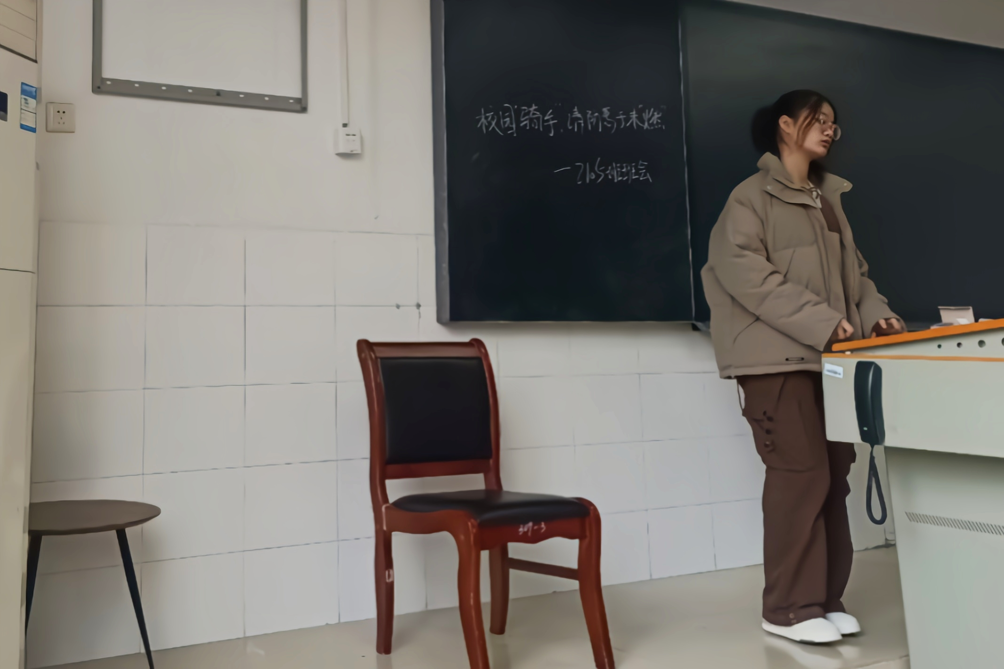 周盛悦以身边发生的电动车骑行安全事件作为切入点,为同学们介绍了电动车安全管理的“七个严禁”、驾驶员及搭载人员的相关规定以及相关的违规处分三个方面的内容,提醒同学们骑电动车时要佩戴安全头盔,遵守交通规则,谨慎驾驶。