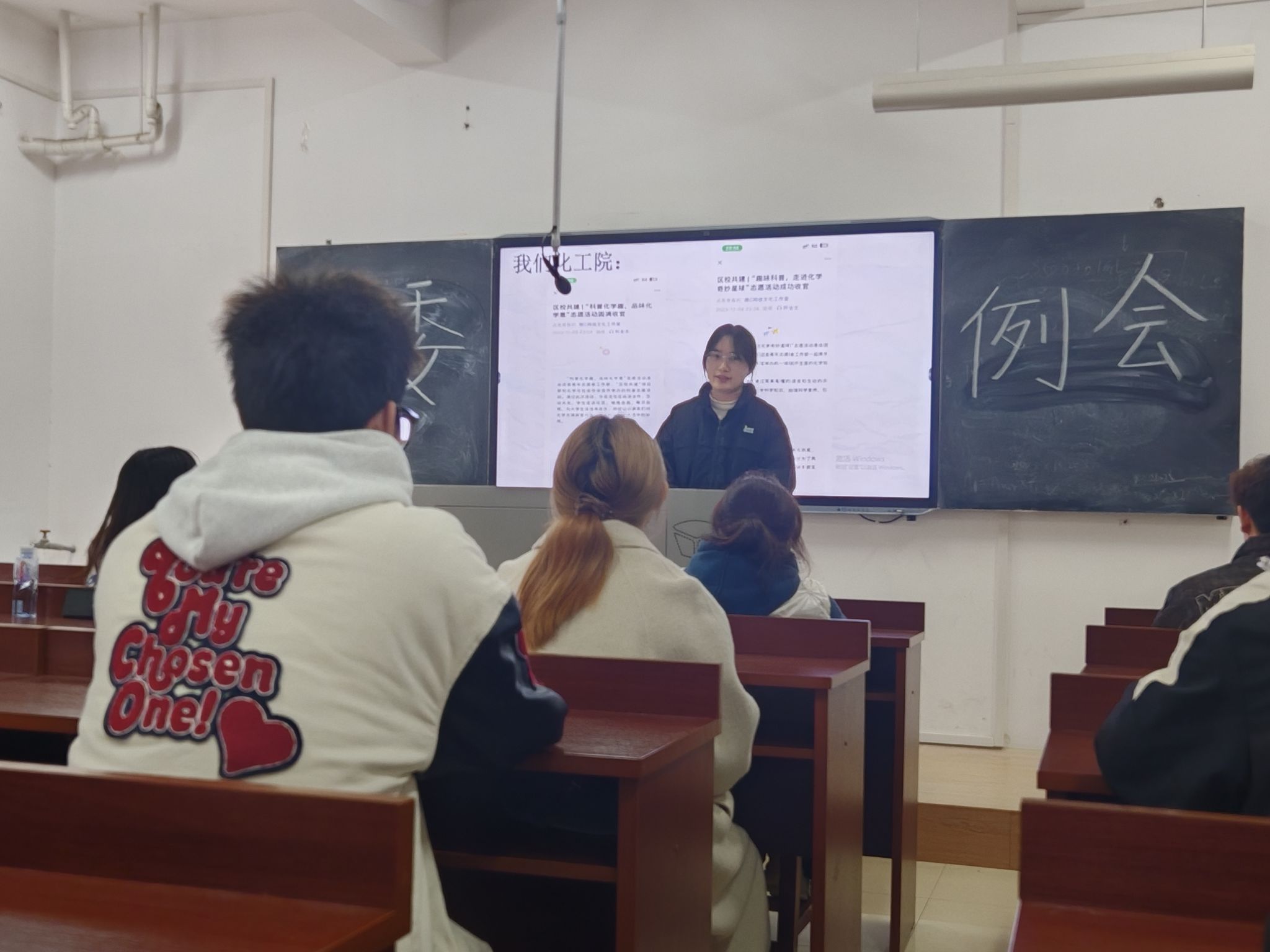 会议开始前,青工部成员组织各班青委进行签到,在丁佳昊向各位青委的到来表示欢迎和感谢后,会议正式开始。丁佳昊提出本月是雷锋月,各班青委需要积极组织相关能够突出化工院特色的志愿活动,传承雷锋精神,同时也指出了各班青委在文件提交时出现的部分问题。青工部第二负责人谷钒进行了科普类志愿活动的经验分享,内容包括合适的志愿服务对象的年龄以及志愿服务地点、前期的准备和实验素材如何寻找。