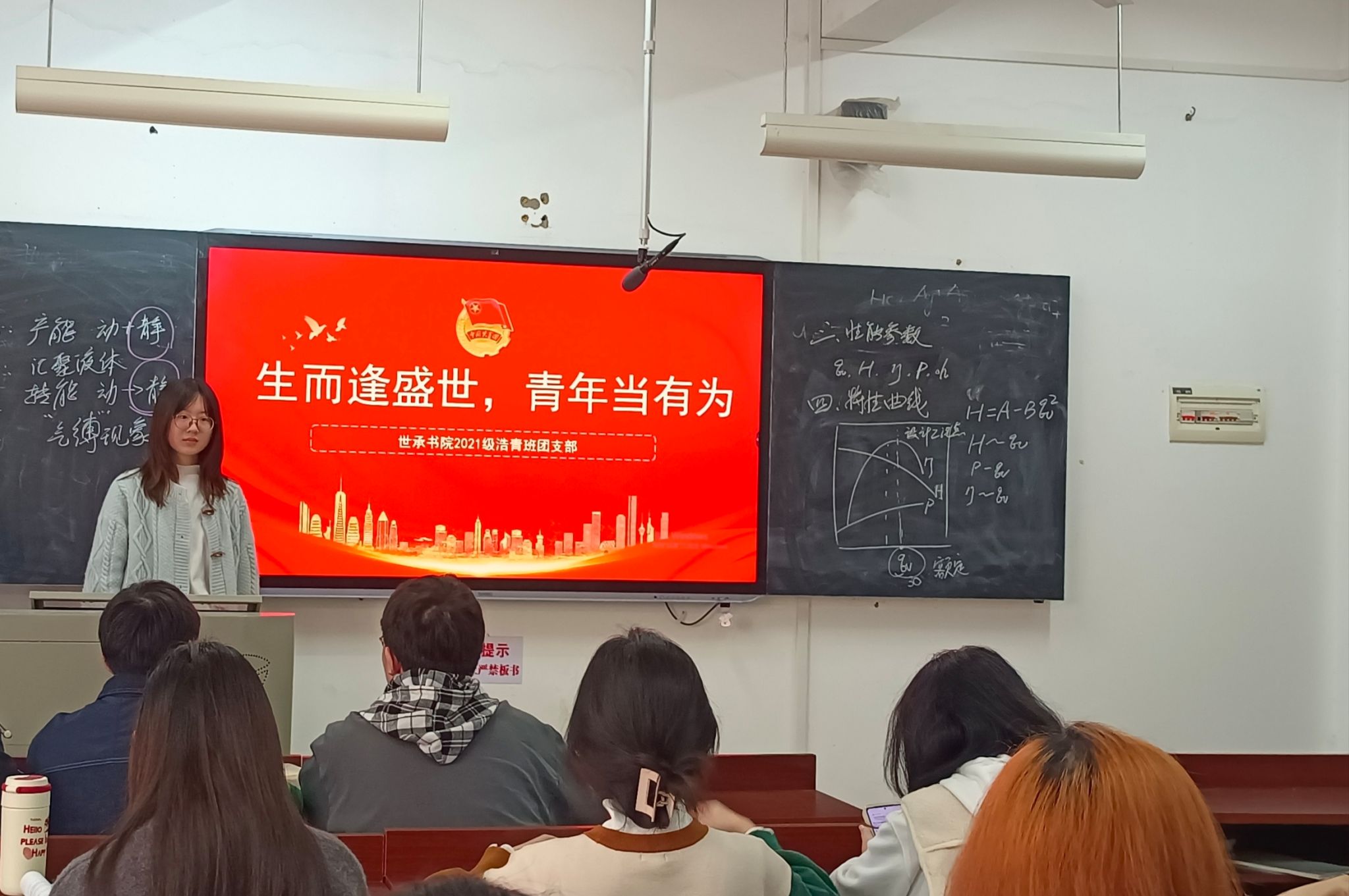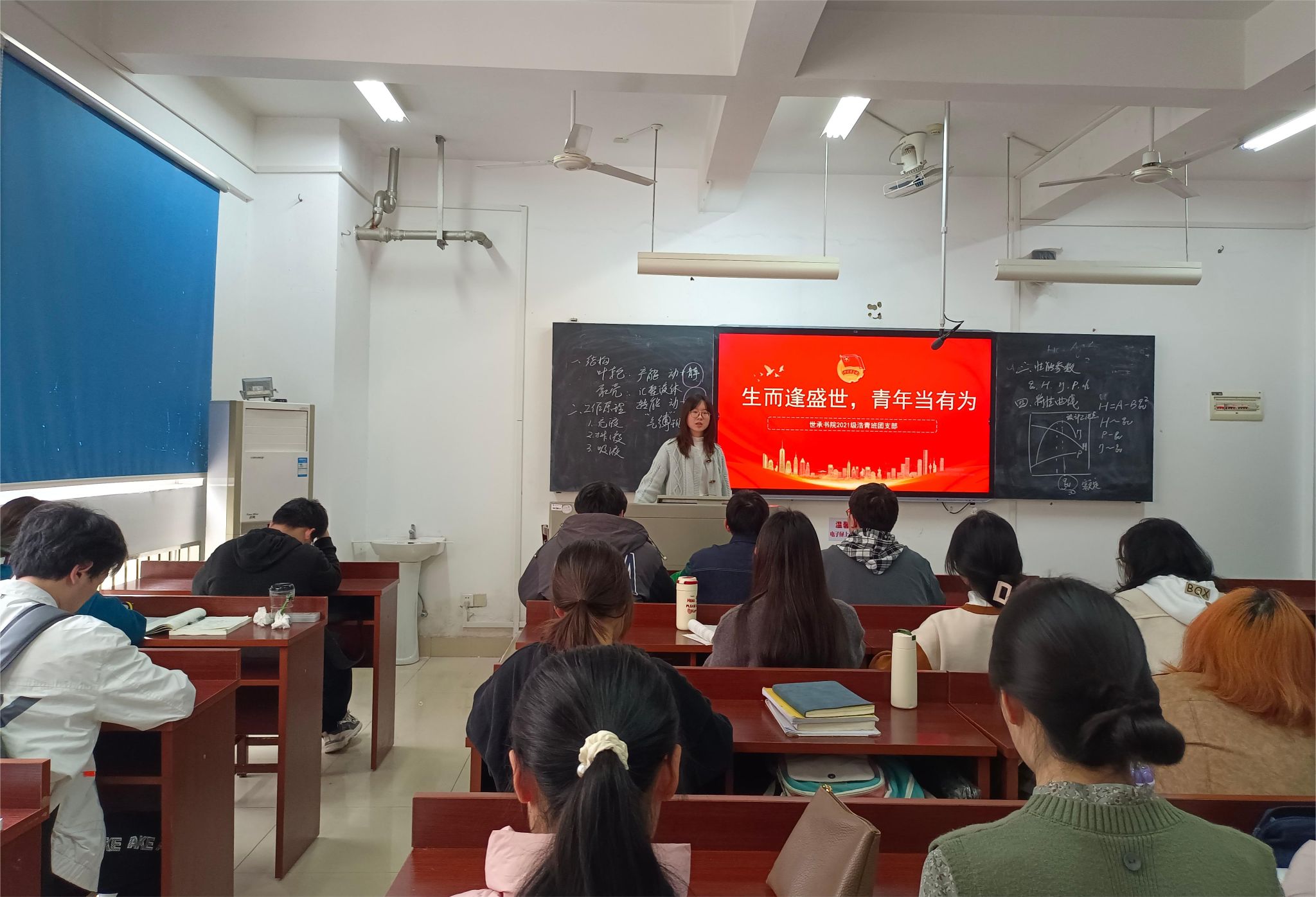 活动中,吴莎组织同学们思考,生而逢盛世,如何做有为青年,而不是浑浑噩噩碌碌无为。陈琳姣和朱唐佳瑶分享自己身为化学专业学生的理想信念,投身科研创新,积极进行学科学习,让青春之花绽放在专业之上。活动最后,吴莎表示,青年要苦练本领,勇挑重担,奋勇争先,不负时代,不负韶华,在新时代谱写青春之歌。