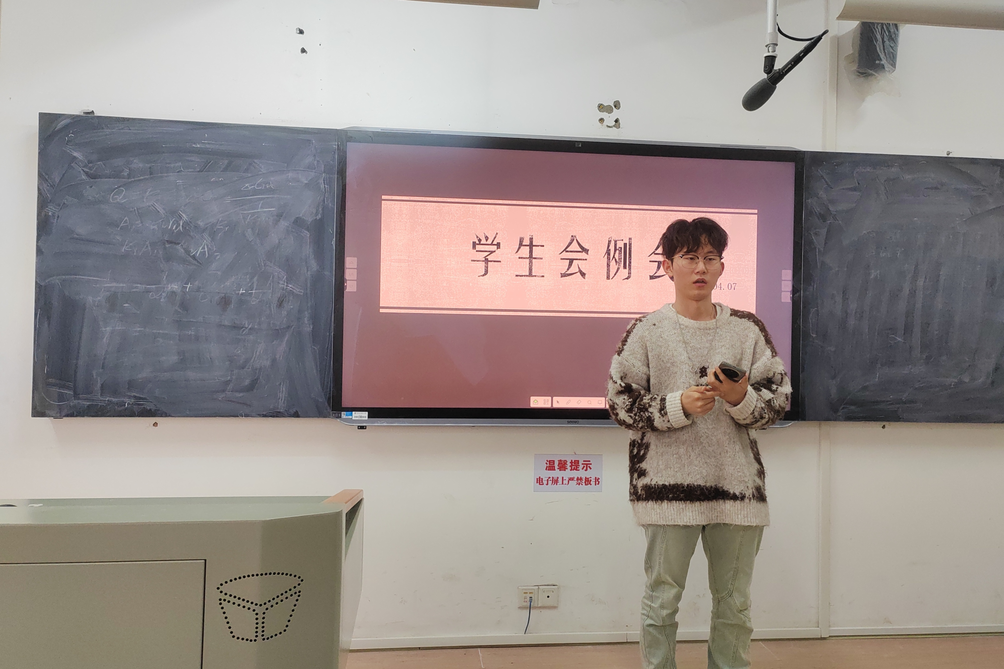 在各部门开展工作汇报之前,学发部干事黄娅妮上台讲解有关策划案撰写和穿搭主持技巧的培训内容。在此次培训中,黄娅妮从时间、地点等多个方面详细介绍了策划案撰写的细节和注意事项,同时也阐述了在主持时应注意的事项以及衣饰穿搭的重要性。