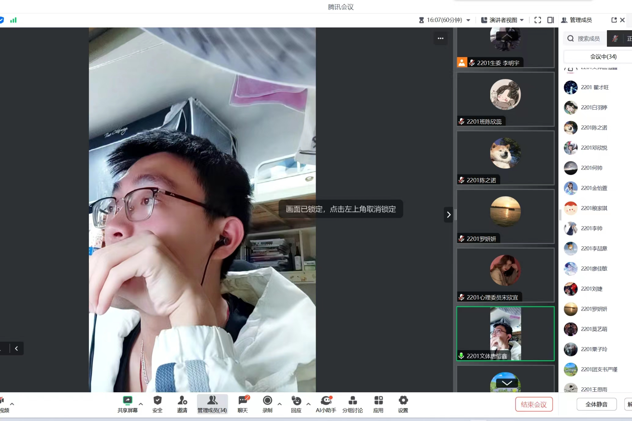 (通讯员 宋欣宜)4月22日21时30分,伟德国际19492201班于线上腾讯会议开展2023-2024年度的学生干部工作的述职会议。此次会议由心理委员宋欣宜主持,2201班共计34名同学参加。