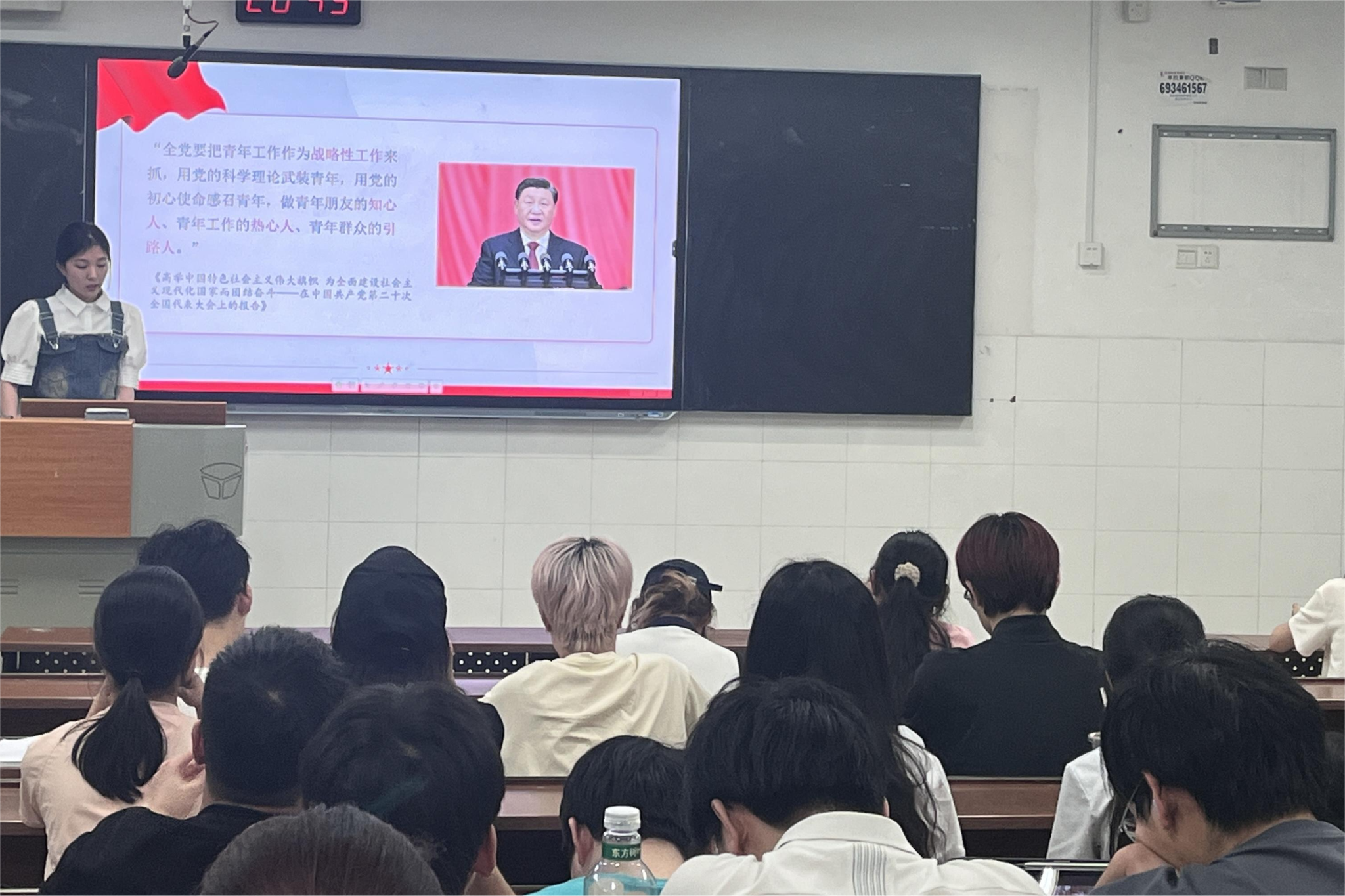 团支书青亲为此次活动致开幕词,并向同学们介绍了此次活动的目的以及流程。活动从思想之声:习近平总书记关于青年工作的重要思想”“当代之问:新时代好青年的基本标准”和“青春之志:‘请党放心,强国有我’”三个部分展开“,带领同学们一起深入学习了习近平总书记关于青年工作的重要思想以及如何成为一名新时代好青年。