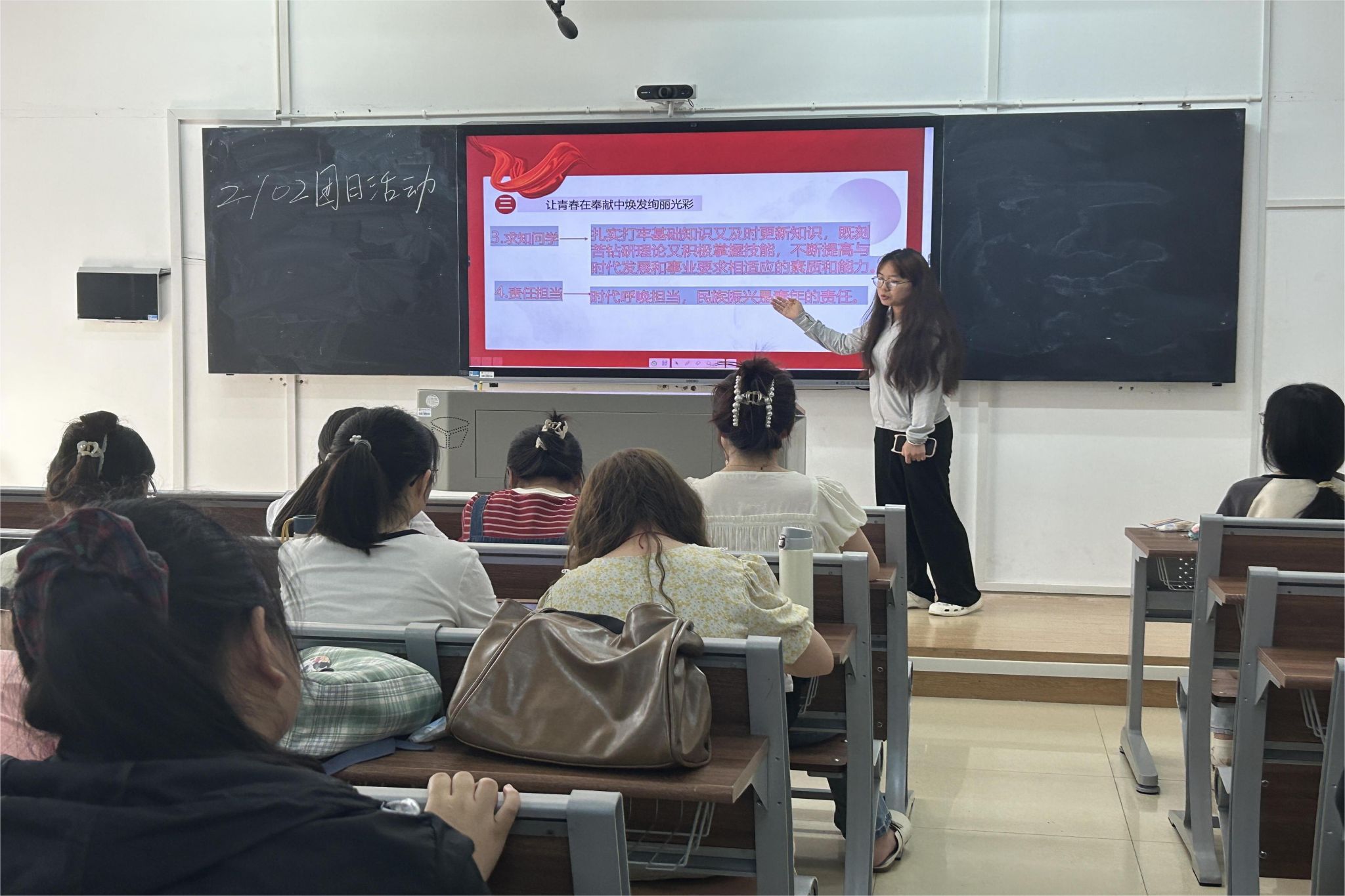 向梦圆向同学们介绍了习近平总书记关于青年工作的重要思想。为全面领会习近平总书记关于青年工作的重要思想的丰富内涵,同学们从党的青年工作的地位作用、目标任务、责任使命和责任要求四个方面进入了深入学习。同学们通过观看视频了解了党领导下的中国青年运动百年历史,在回顾历史中体会青年的前进方向。贺瑶分享道:“作为新时代青年,我们应该以中华民族伟大复兴为己任,坚定理想信念,努力学习科学文化知识,为祖国奉献自己的力量。”最后,向梦圆表示作为青年应当厚植家国情怀,勇担时代使命。