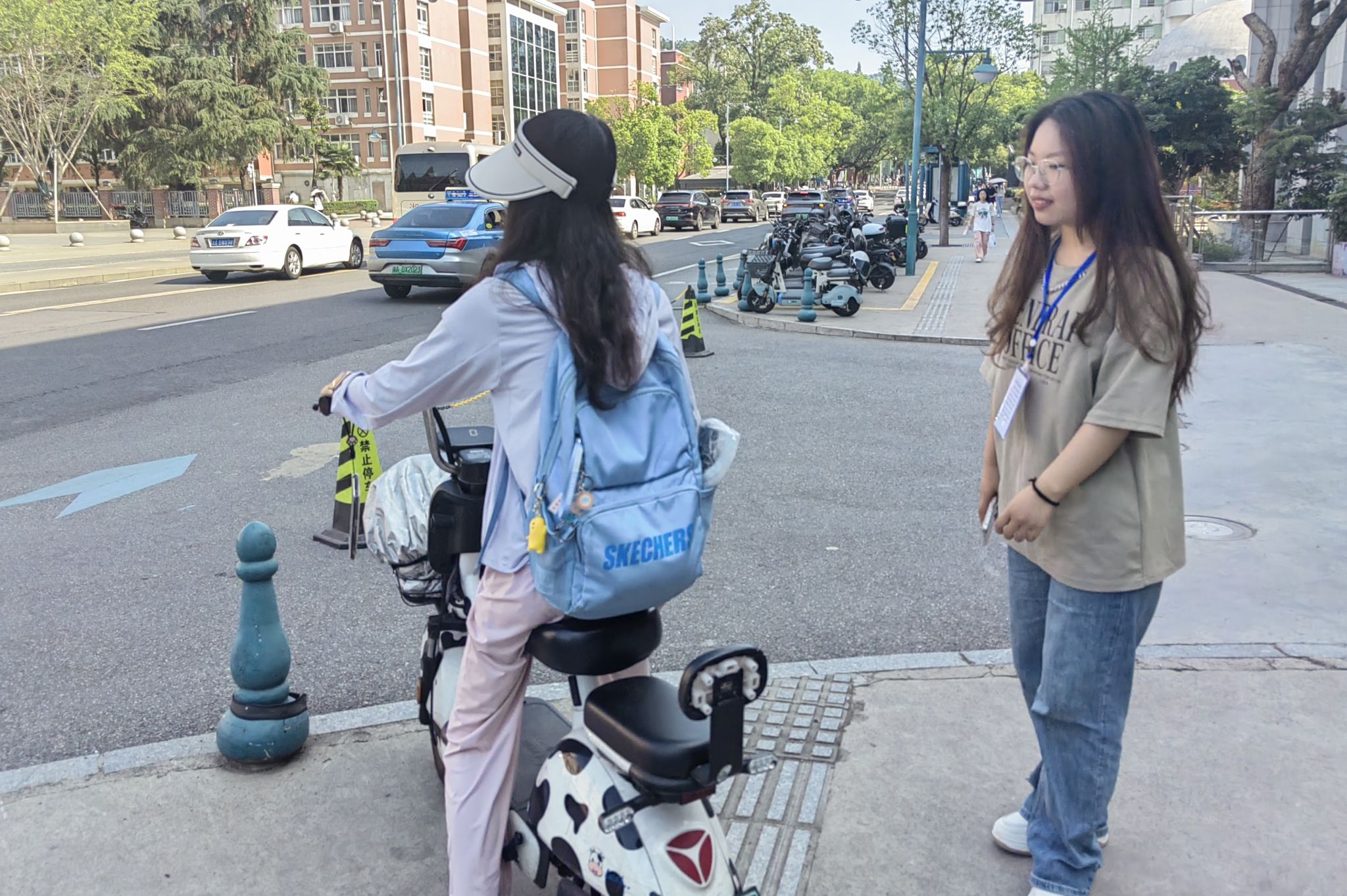 为保证志愿活动有条不紊,瞿淼提前对招募的志愿者进行分组,每个小组分配4名组员。活动伊始,由瞿淼为每个小组的志愿者讲解此次志愿活动的基本内容,并进行人数清点与小组任务的安排。活动期间设定了签到签退制度,确保各时段志愿者准时到场。志愿者们都及时到岗,认真参与活动,在图书馆门口引导同学们正确停放电瓶车、将乱停靠的电车整齐地摆放到规定的停车区域、整理停车区域的垃圾。在志愿者们的共同努力下,活动进展顺遂。