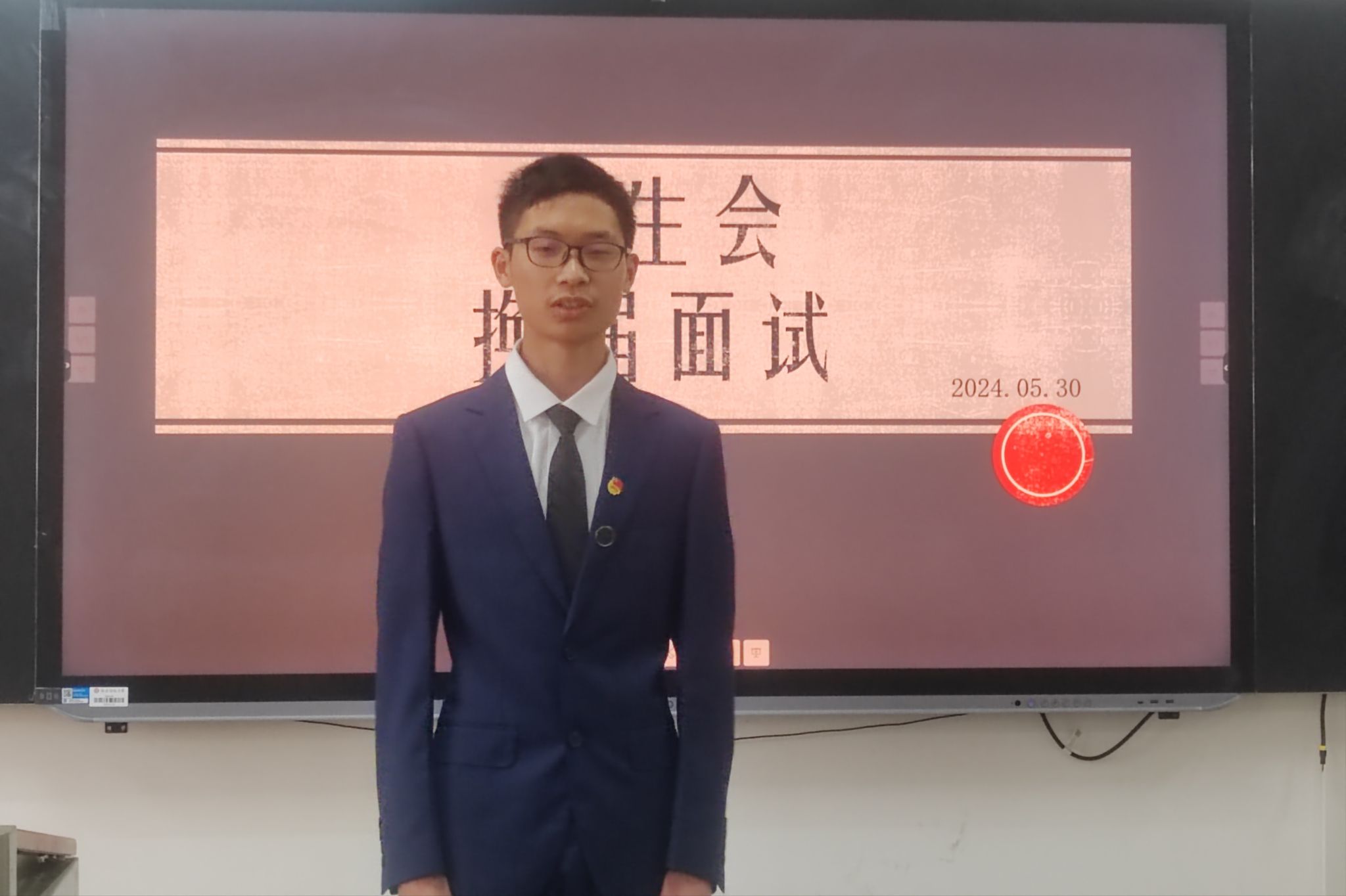 面试开始前,八名候选人在化学楼二楼大厅候场。正式开始后,候选人按照初定顺序依次有序地进入教室进行面试。面试分为两个环节——自我介绍与面试官提问。自我介绍中,八名候选人都阐述自身具备的能力和对未来工作的期望,充分展现个人风采与优势,让面试官了解了候选人们的基本情况。面试官提问环节,各面试官从学习成绩、实践经验、个人能力等方面对候选人进行了提问。每位候选人都认真给出了自己的答案。面试官与候选人都高度重视并严肃对待此次面试。面试全程也保证公平公开,保障每位候选人的权益。