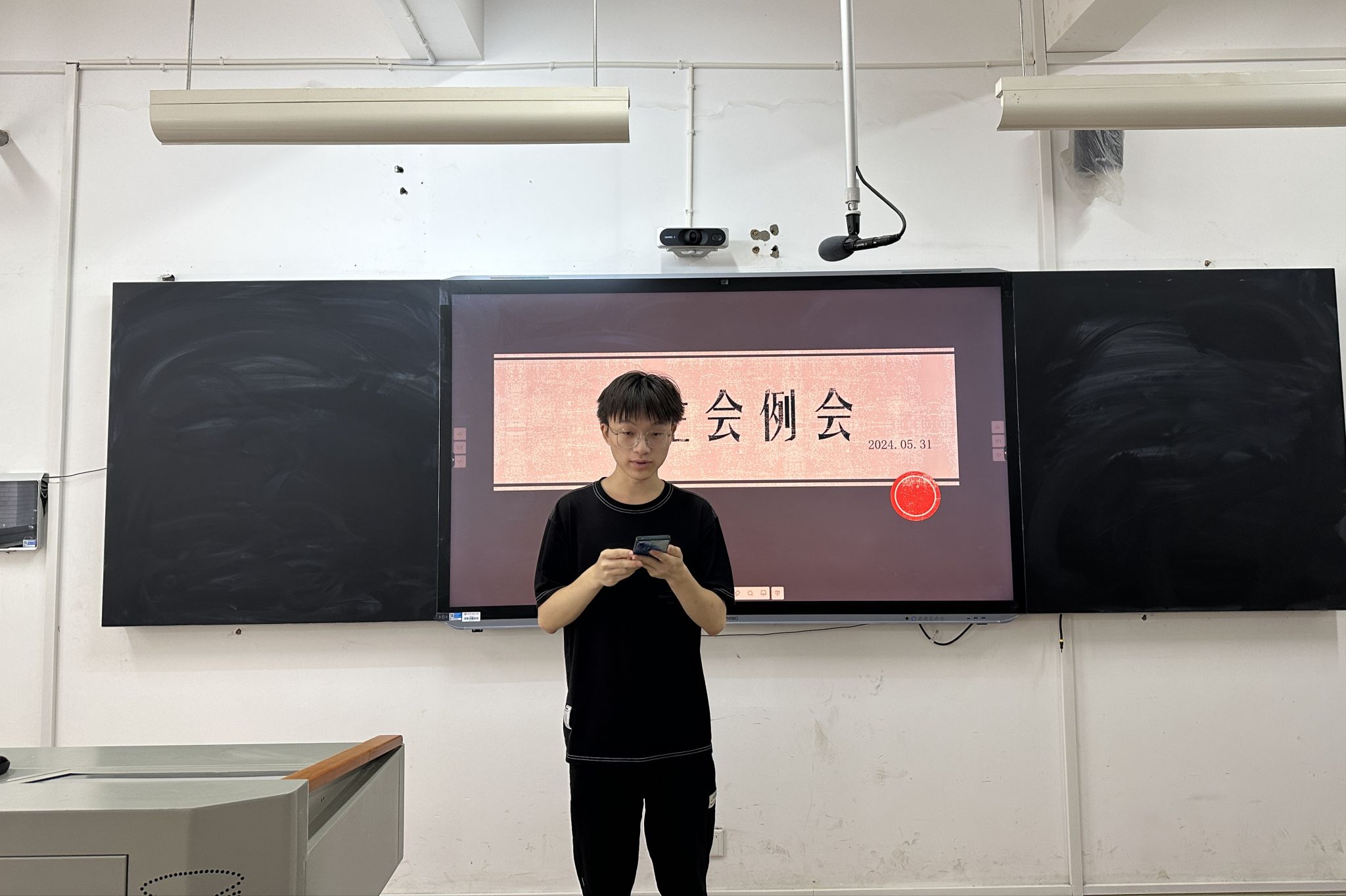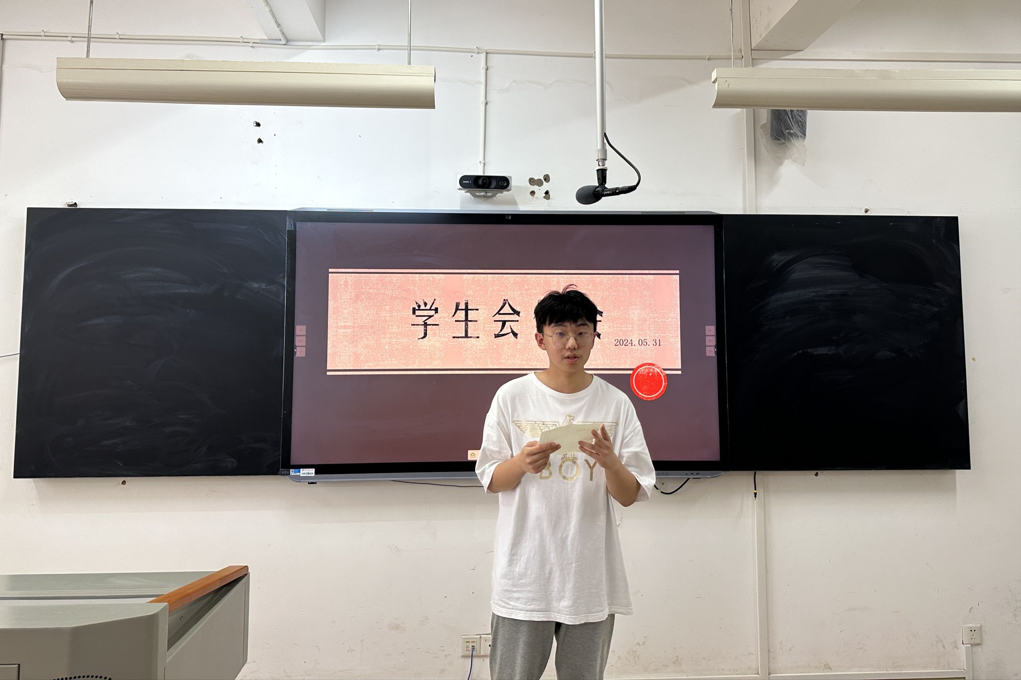 活动伊始,各部门成员依次上台汇报近期工作情况与下一步工作计划。宣传部正在进行双代会微推的制作和候选人资料的收集;办公室正在撰写学生会换届面试通讯稿和月通讯稿;学发部预备发布“21天学习搭子”活动的公示证明;文体部组织开展排球队训练,并将于5月31日至6月2日举办为期三天的16进8排球赛;权益部正在进行国家开发银行生源地助学贷款毕业学生的确认和“我给你们写封信”毕业生活动的总结材料的整理;健服部已完成朋辈十佳百优申报材料的收集和读书观影作品获奖评选及公示,正在制作“5.25心理节”的活动微推。最后,主席团号召对校学生会感兴趣的成员可以积极关注暑期换届通知,参与暑期的笔试环节。