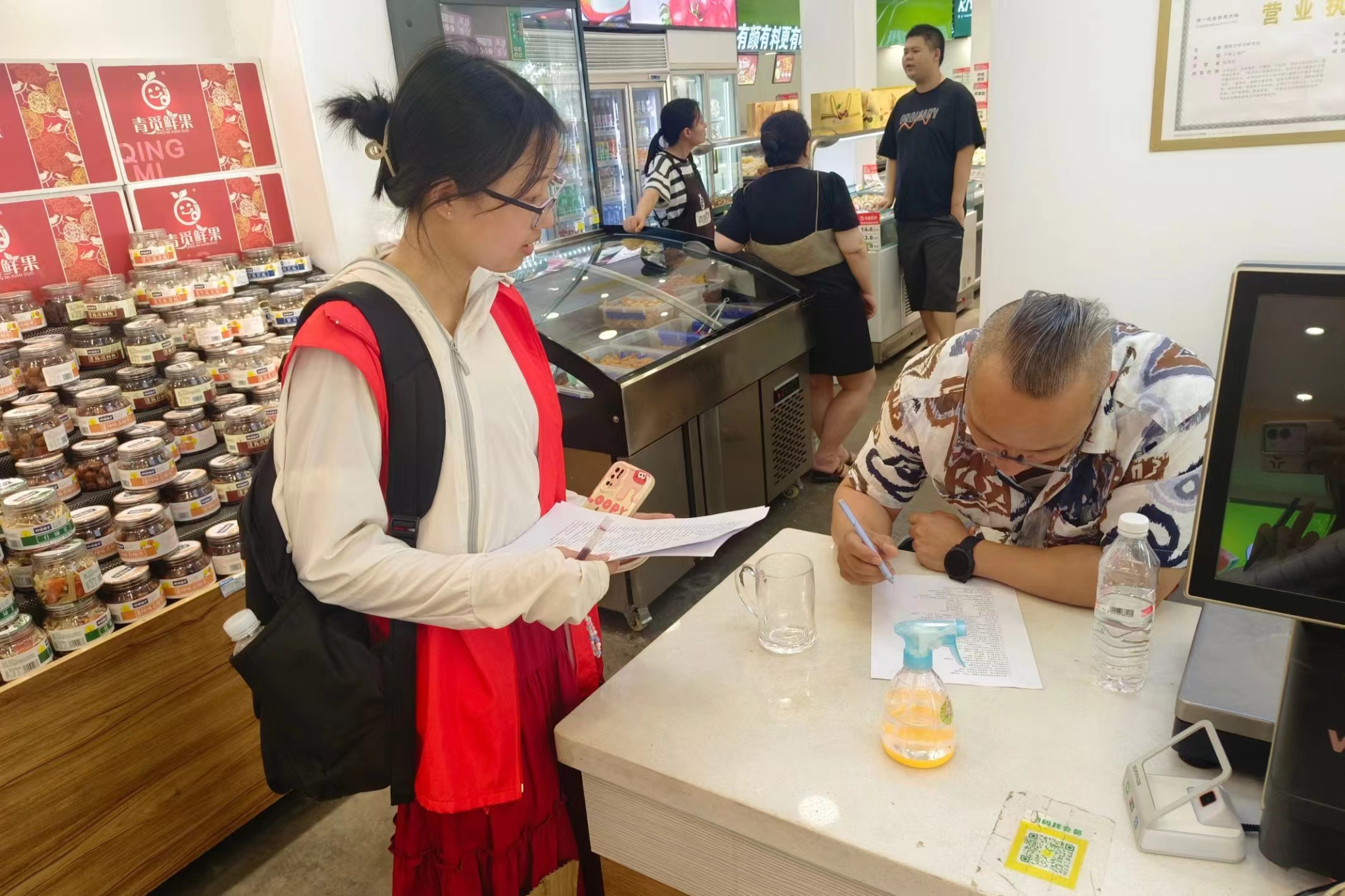 当地居民认真填写问卷