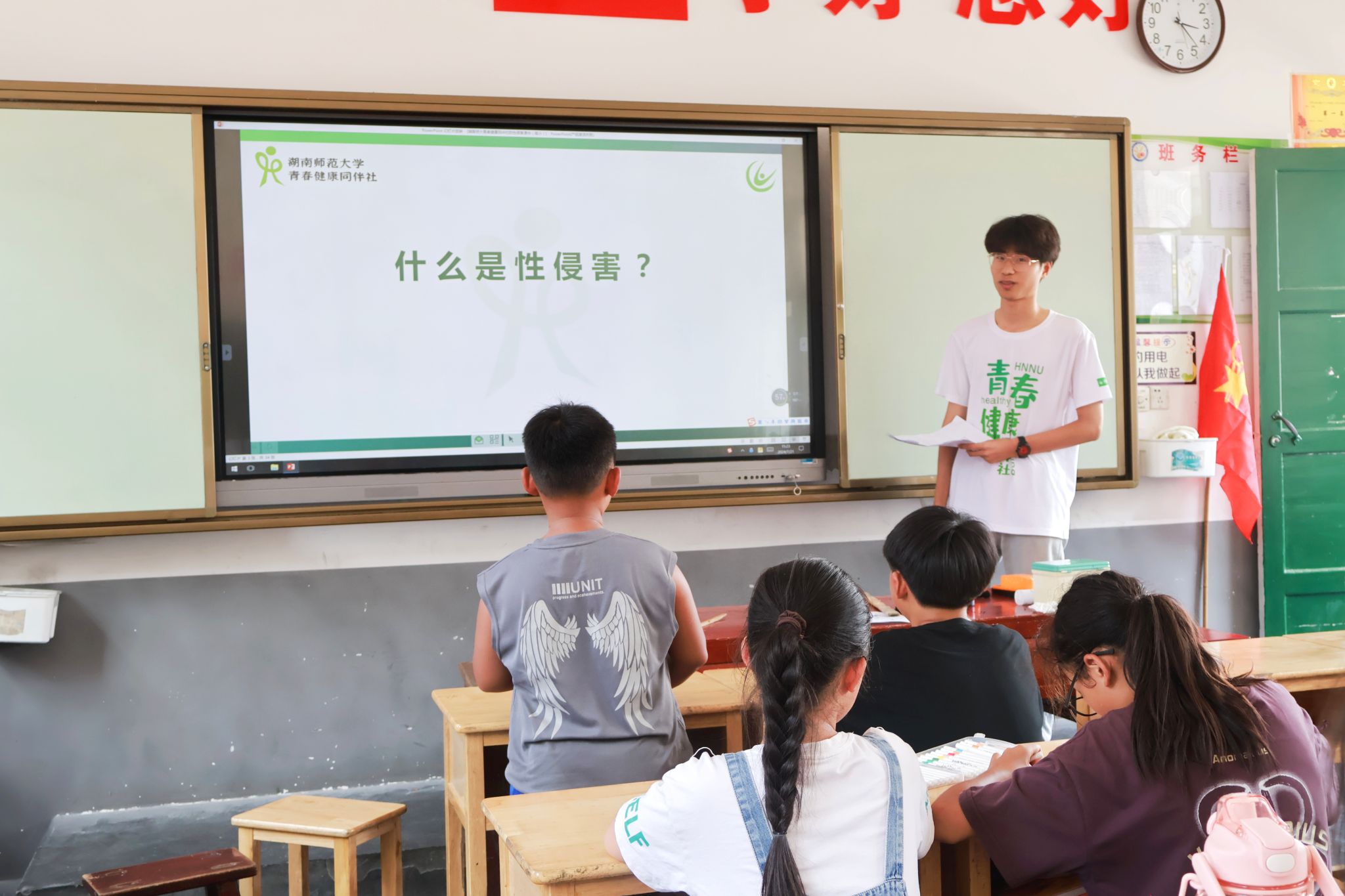 (通讯员 刘文琦 李琴辉)为了加强未成年人的自我保护意识,提高他们在面对性侵害时的防范和应对能力,7月21日下午,伟德国际1949赴益阳市安化县暑期社会实践团——“星火接力,丹心筑梦”队在马路镇完全小学夏令营五年级的全体学生中开展青春教育讲堂活动。活动由实践团调研组组员孙金鹏和实践团调研组组员李艳泽主持。