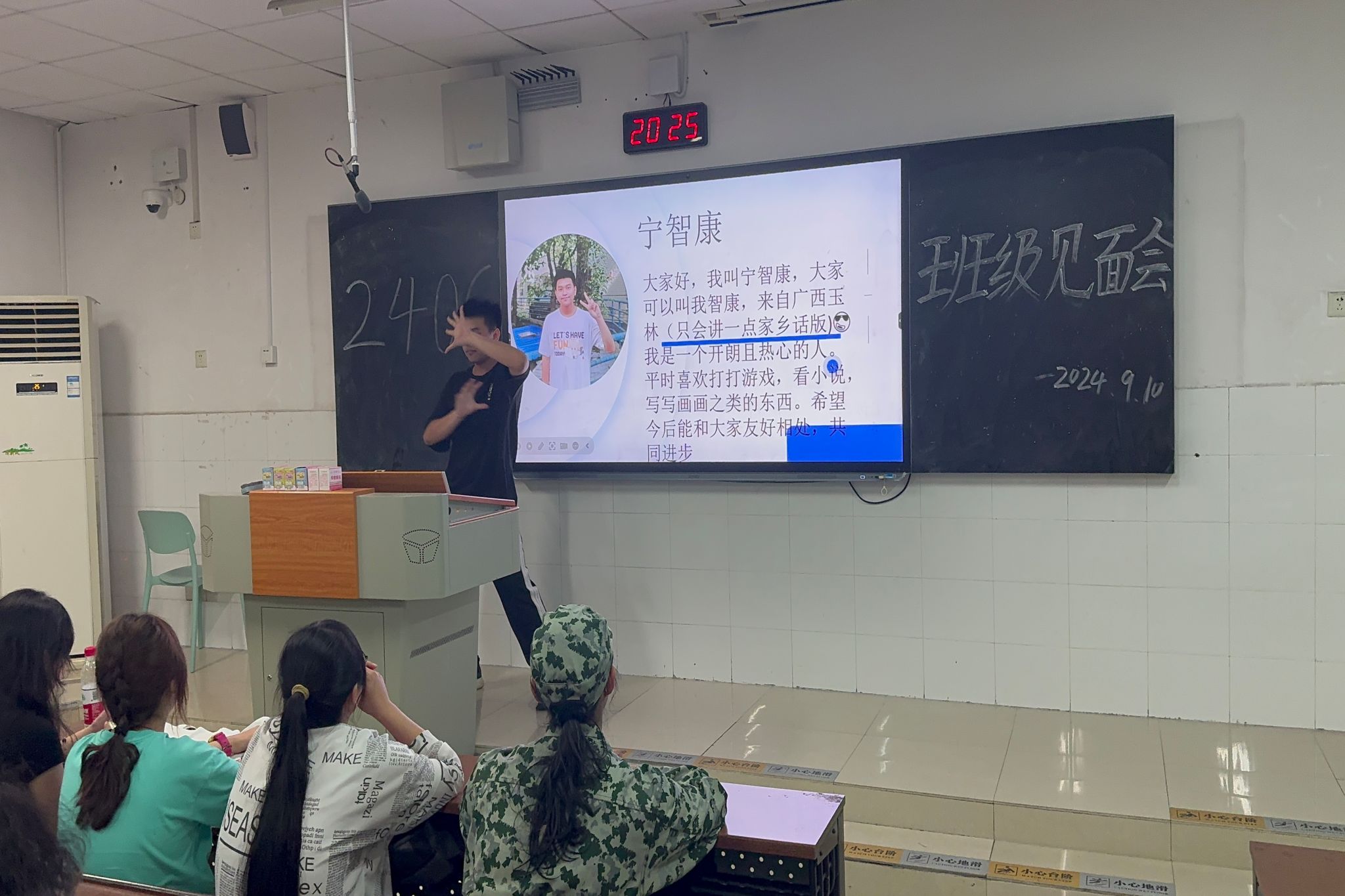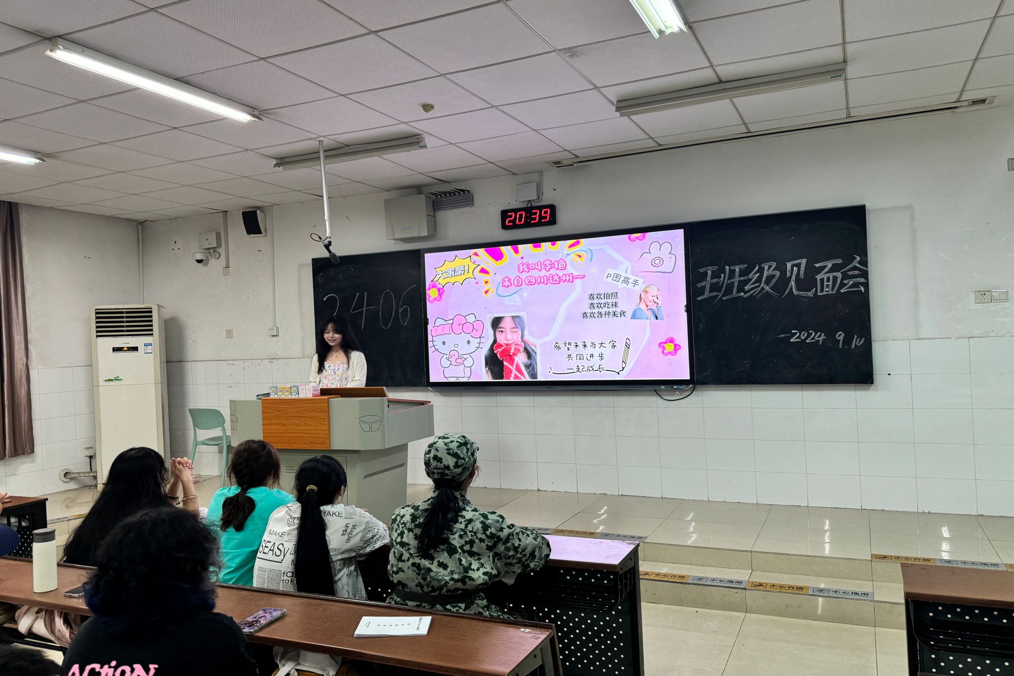 活动伊始,李岚彪向2406班同学表示了祝贺,恭喜他们跨入了一个全新的人生阶段,见面会上,班助王康耀、李岚彪、邱渝杰向同学们先做了自我介绍,向新生提出了几点期望,希望新生们能够尽快适应大学生活,以学业为重,兼顾各方面全面发展,随后,班级里的每一名同学都从自己的家乡、特长、兴趣爱好出发进行了自我介绍,介绍过程中还穿插了一些同学的才艺展示,在自我介绍环节之后,李岚彪向同学们强调了军训期间的安全问题、新室友的相处问题以及学业规划问题,同时也鼓励同学们积极参与学生干部的竞选当中。