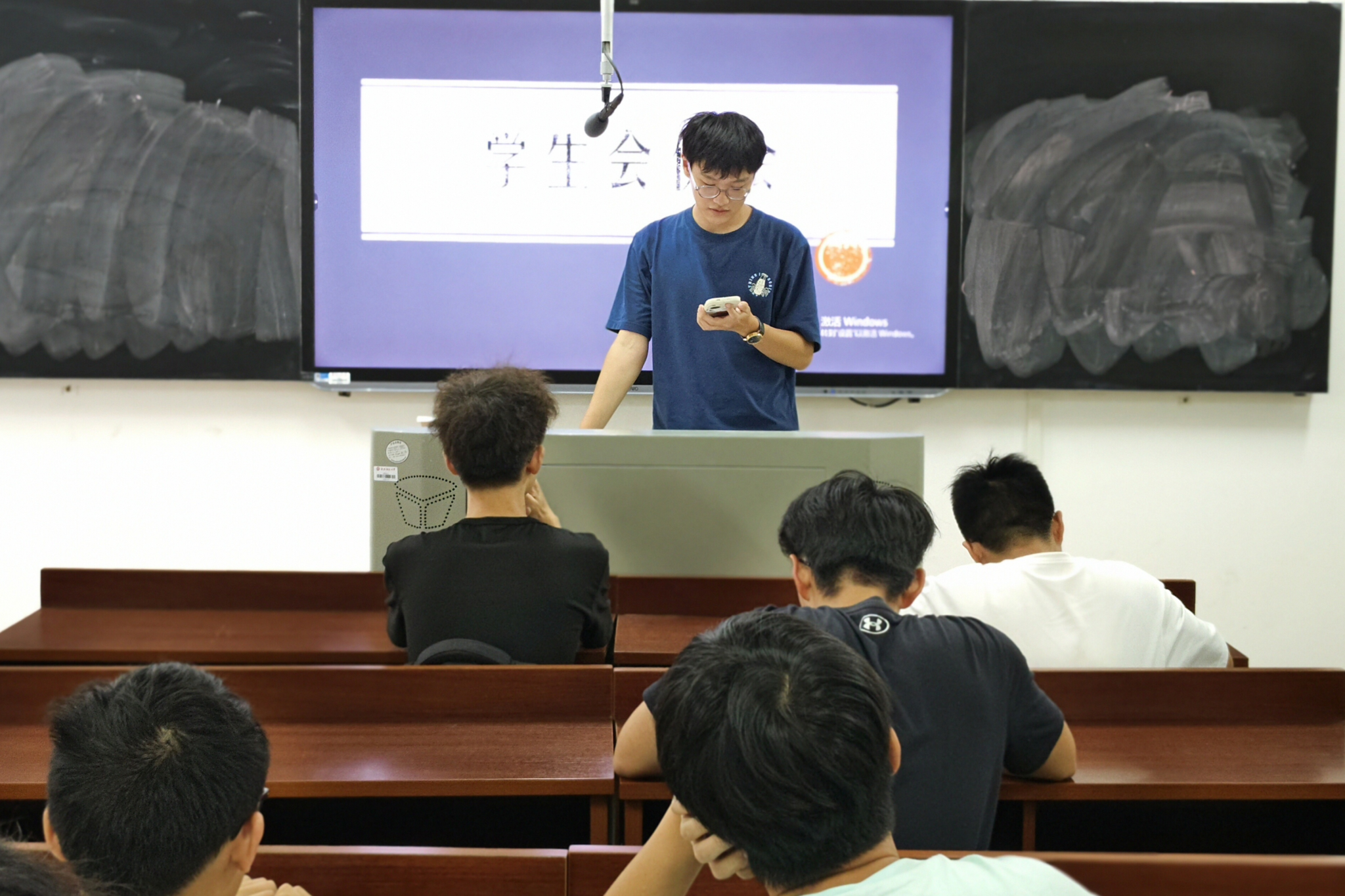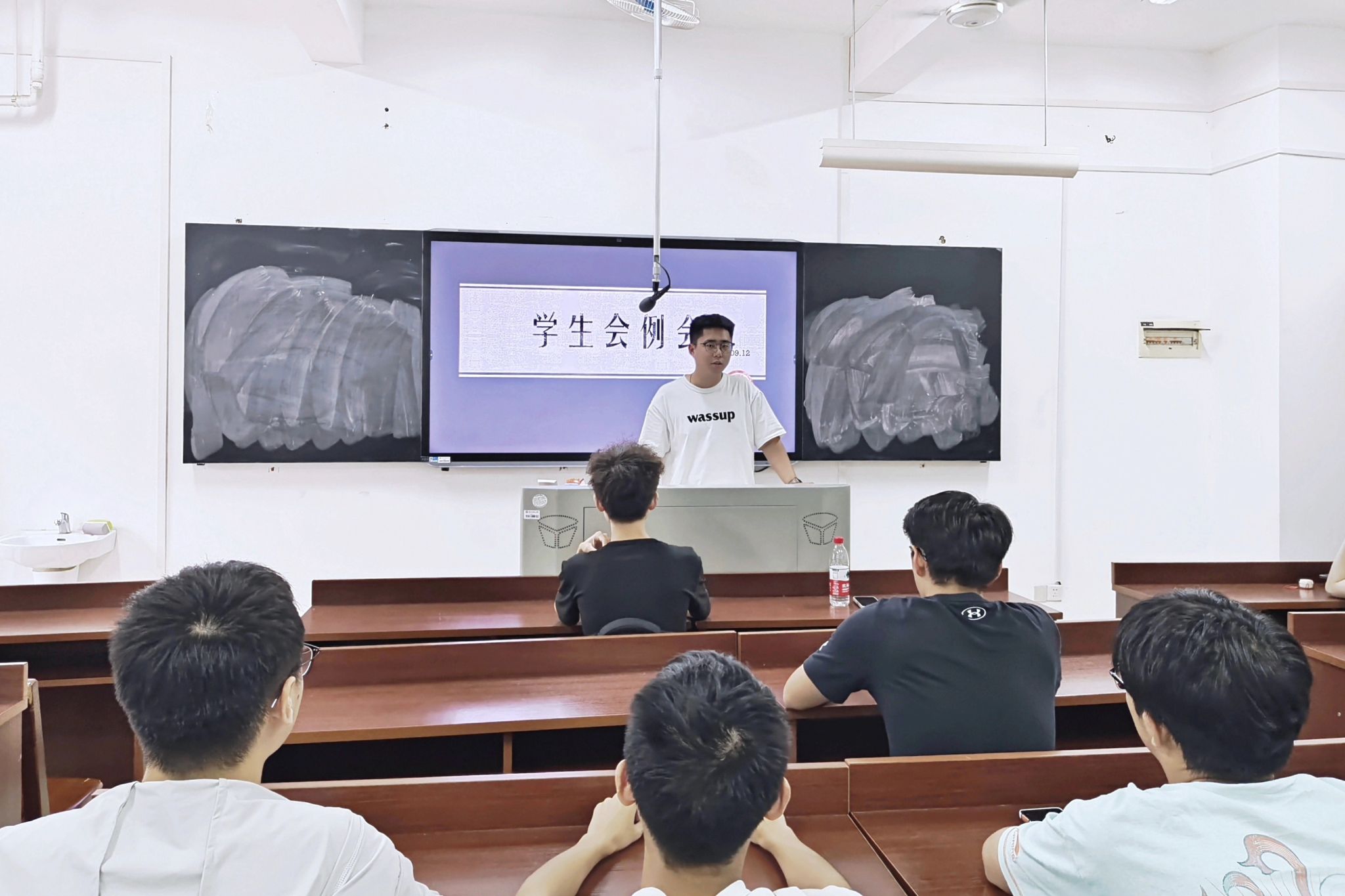 会议伊始,孙文涛致开场讲话,他强调学生会干部在工作、学习与生活中应当保持礼仪礼节,同时也要注重讲话方式,礼貌待人;第二,孙文涛希望全体学生会成员应当通力协作,部门间多建立联系;第三,学生会各部门应当建立与老师们沟通的渠道,积极向老师汇报工作;最后,学生干部做一项工作前应当进行梳理,做好规划,才能有条不紊地完成任务。