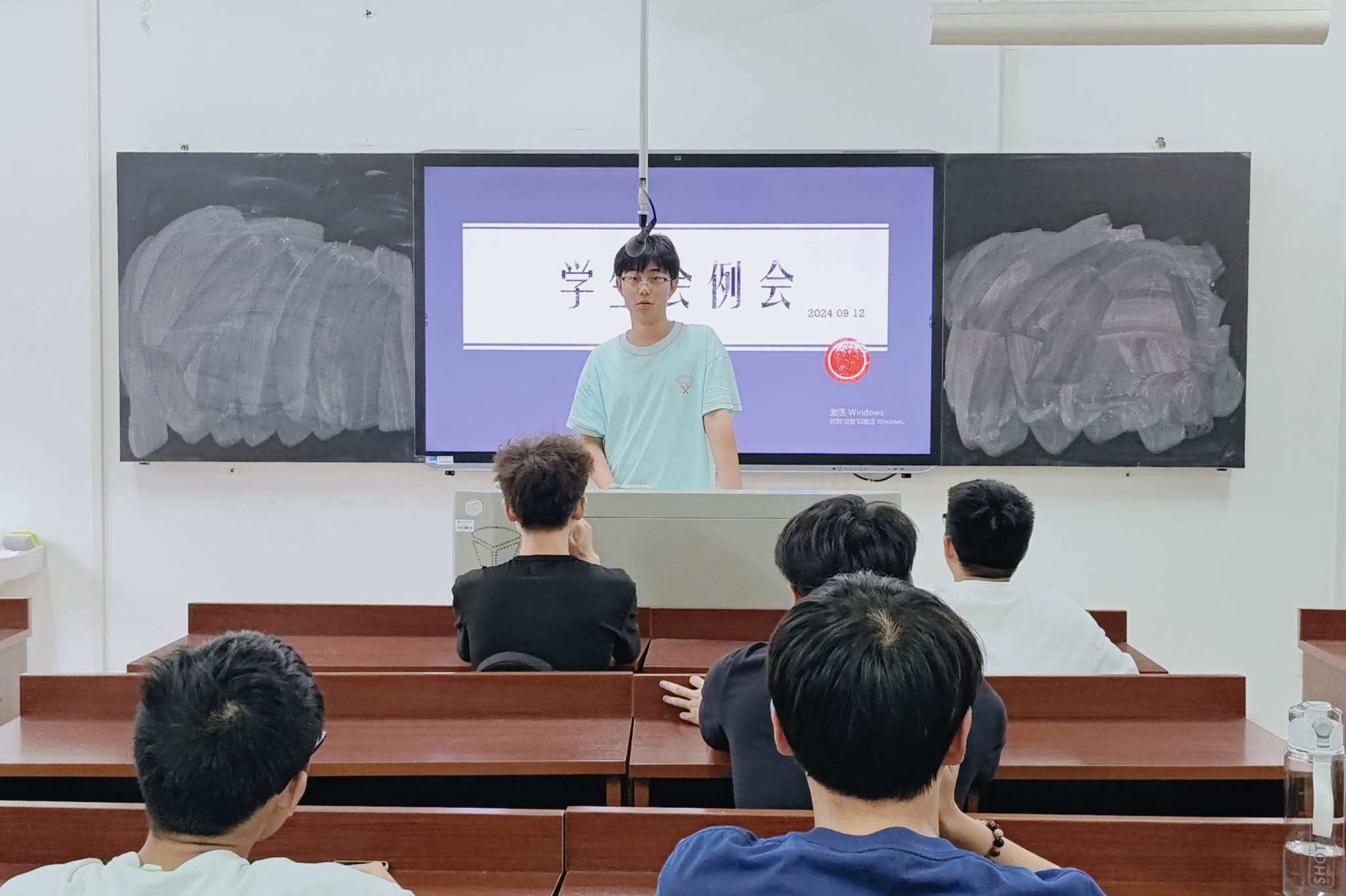 各部门依次上台汇报近期工作与下一步工作计划。宣传部已完成学生会招新微推的发布,正在逐步发布各部门招新说说;办公室已完成招新宣讲PPT的制作和快乐周末谈的准备工作;学发部完成了“新老生交流会”23级优秀代表的邀请,正在进行“书香校园”和“新老生交流会”的相关工作;文体部已发送活动公示汇总,正在进行迎新晚会策划案的撰写;健服部已完成“健心践行”暑期社会实践调研活动材料的提交及礼仪队志愿时长的统计与后续公示文件的制作、发布;权益部完成了新、老生回执码的收集,解决了部分同学的注册问题。最后,主席团成员总结了近期工作,督促各部门负责人尽快与换届后的班干部取得联系并加入群聊。