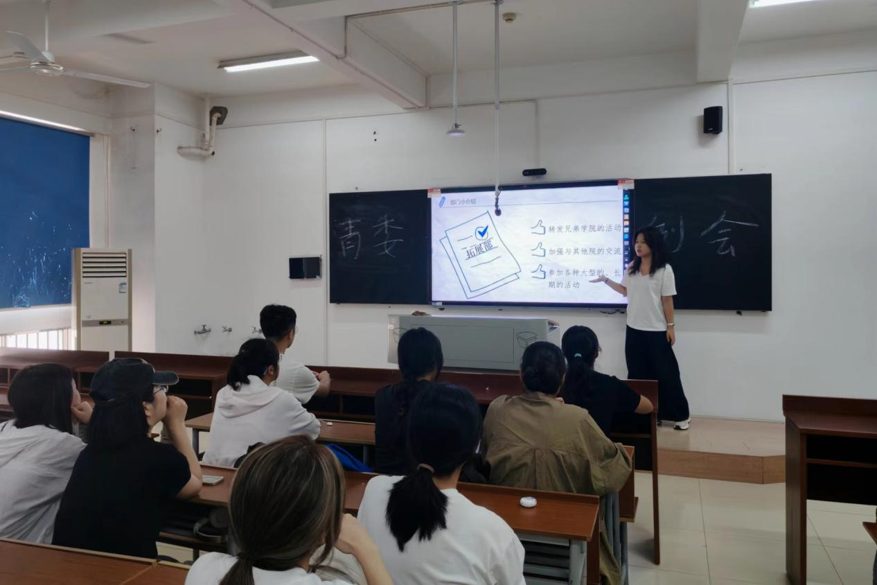 会议伊始,23、24级青委及青工部全体成员依次上台进行自我介绍,瞿佳慧对各位青委的到来表示欢迎与感谢。青工部第二负责人周榆博介绍了监察部的工作内容,明确青委每月的工作职责,就如何提升志愿服务质量提出了具体可行的建议。青工部第二负责人陈洋庆详细阐述了举办志愿活动的基本要求,鼓励各班青委积极组织志愿活动,丰富活动形式。青工部第一负责人谢北总结此次会议,并指出各班青委要认真履行职责,加强沟通联系,及时转发通知,落实各项活动的开展。