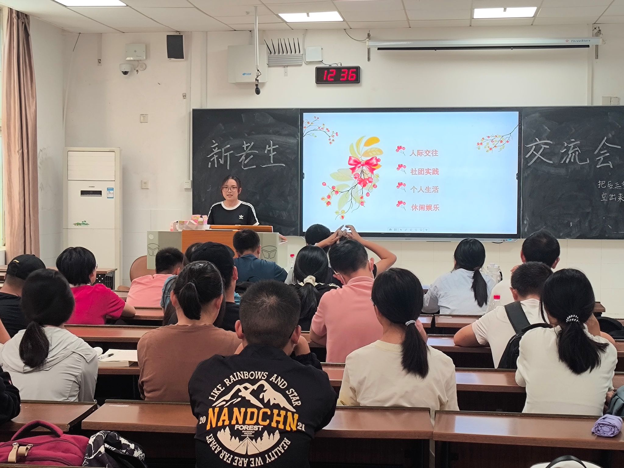 活动伊始,周玥霖向新生分享了如何在大学中取得好成绩以及奖学金,鼓励新生积极参与学生工作,有规律、有计划地进行学习。周玥霖分别从人际交往、社团实践两个方面向新生介绍了大学生活,结合自身经历给出相应建议,并且鼓励新生积极参加志愿活动,如三下乡等。在问答环节中,周玥霖回答了新生关于班导师职务、书香班级评选、如何入团入党等多个问题。活动结尾,主持人陈珍惜对此次活动进行总结,组织新生有序退场。