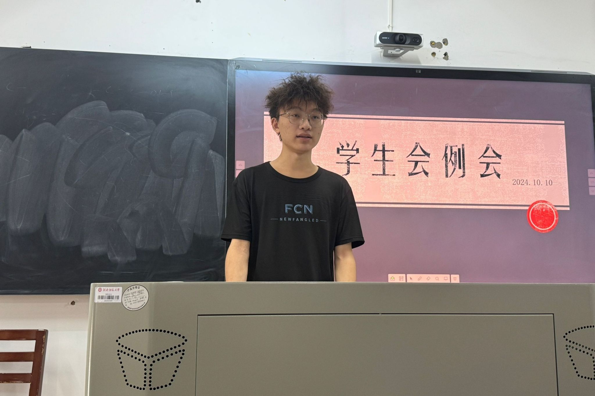 会议伊始,各部门依次上台自我介绍,汇报近期工作与下一步工作计划。办公室已完成第334期快乐周末谈活动,正在准备第335期快乐周末谈活动和学生会见面会;宣传部已完成多篇微推和说说的发布;学发部已完成书香班级智慧树的收集与张贴,并发出开展新老生交流会的通知,未来教育家活动正在进行;健服部正在进行双十精神卫生日的策划和“快乐元素”心理辅导室的装饰;权益部已完成国奖材料的收集,推荐名单已确认,审核已完成,同时正在策划“寝”拍独家宿舍生活小窍门视频和一往“寝”深宿舍全家福照片的征集活动;文体部已发送了迎新晚会第一次海选时间的通知和运动会运动员的招募通知,并且确定了“满‘新’欢喜,逐梦星程”的迎新晚会主题。主席团成员总结了近期工作,提醒各部门成员日常要讲究文明礼仪,并强调工作时要严肃,也希望全体成员热爱学生会工作,共同进步。