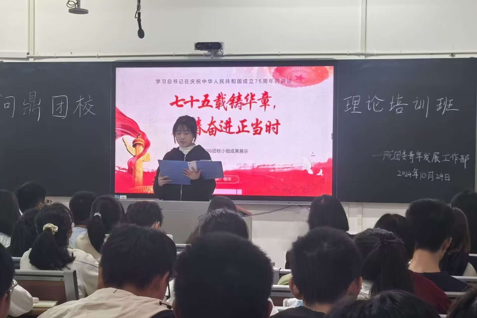 理论学习第一课由2023级各团校小组围绕“七十五载铸华章,青春奋进正当时”的主题学习,轮流上台向大家汇报小组的学习成果,并分享自己的心得感悟,激励学员们珍惜当下,锐意进取,努力成为可堪大用的人才。其他学员记录要点,相互交流,纷纷表示会将所学知识内化于心、外化于行。