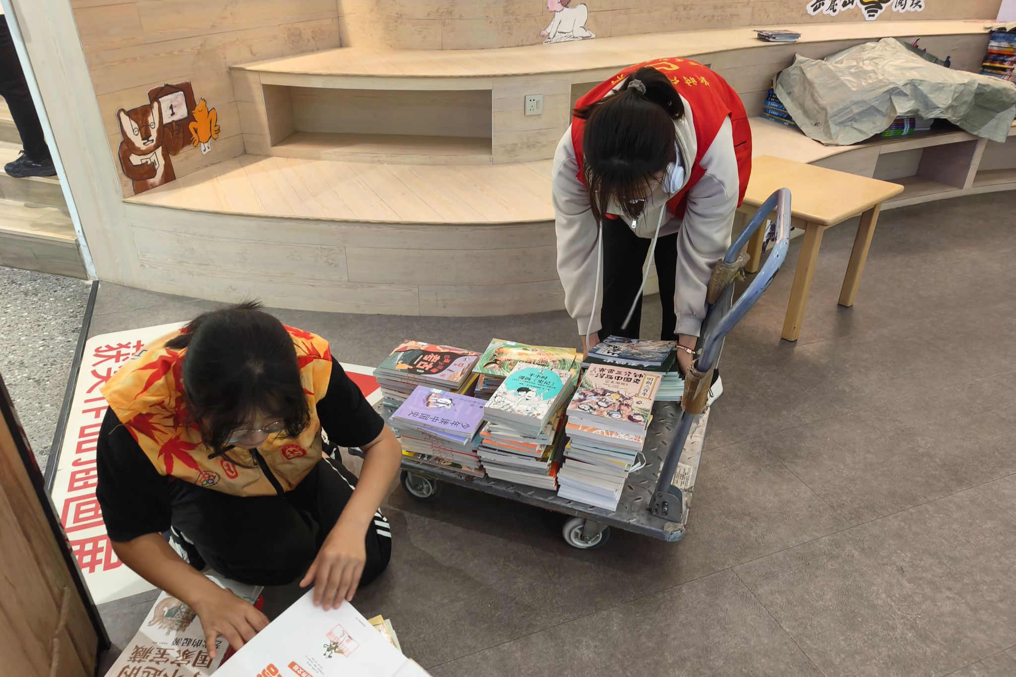 志愿者进行书籍整理