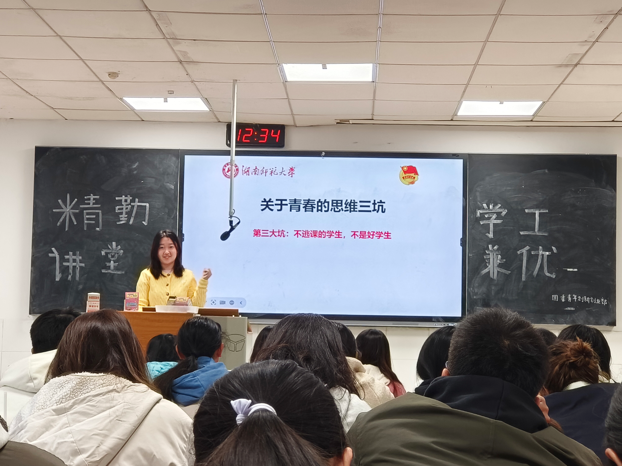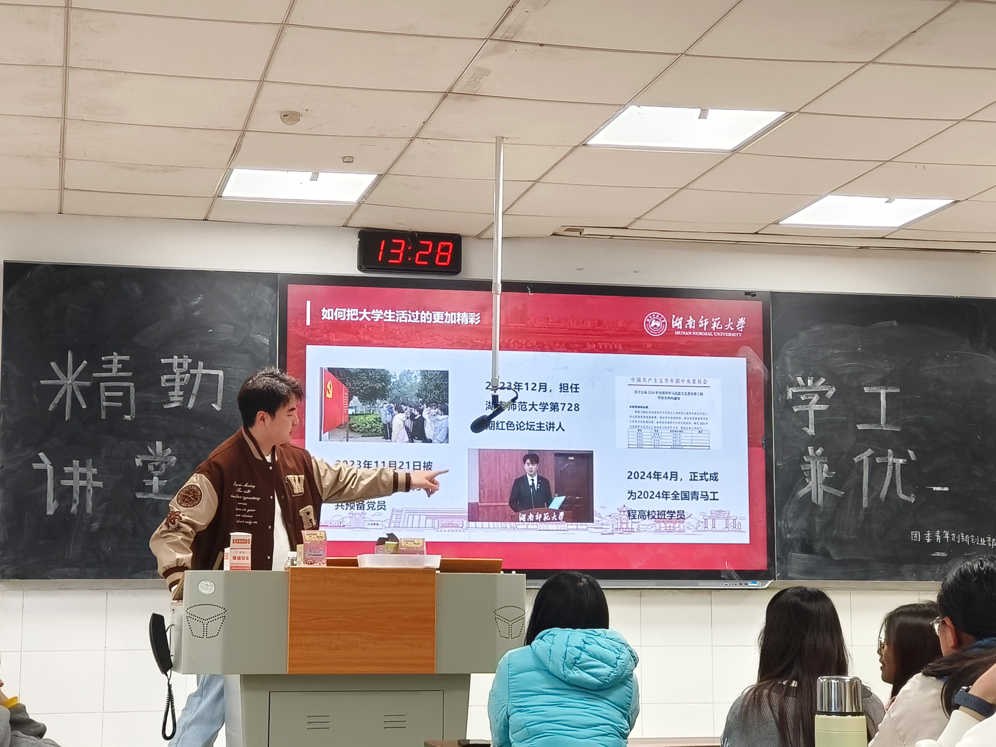 (通讯员 毛尚峰 熊志惠)11月19日12时30分,伟德国际1949团委青年创新创业部在至善楼107教室举办精勤讲堂之学工兼优。此次讲堂由2021级本科生胡筱晨和谭杰文担任主讲人,青年创新创业部干事陈柳蓉担任主持人,2022级、2023级及2024级部分同学参加此次活动。