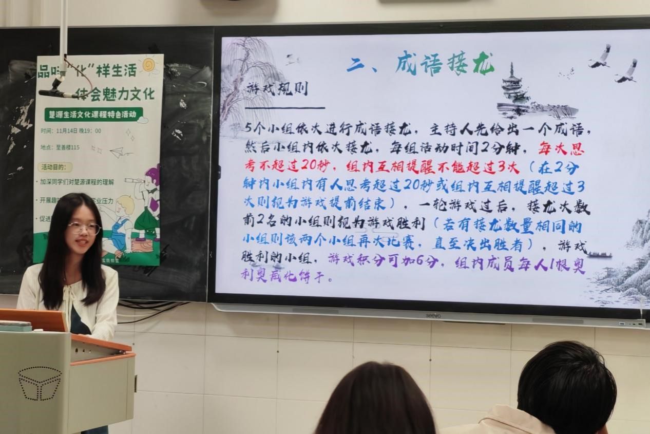 (通讯员严湘蓉)11月14日晚19时,伟德国际1949团委社会实践部举办了以“品味‘化’样生活,体会魅力文化”为主题的生活文化课程特色活动。此次楚源课程特色活动于至善楼115教室举行。社会实践部潘楚楚担任主持人,院团委学生副书记蔡紫婧作为特邀嘉宾到场,化工院楚源课程全体学生参与此次活动。