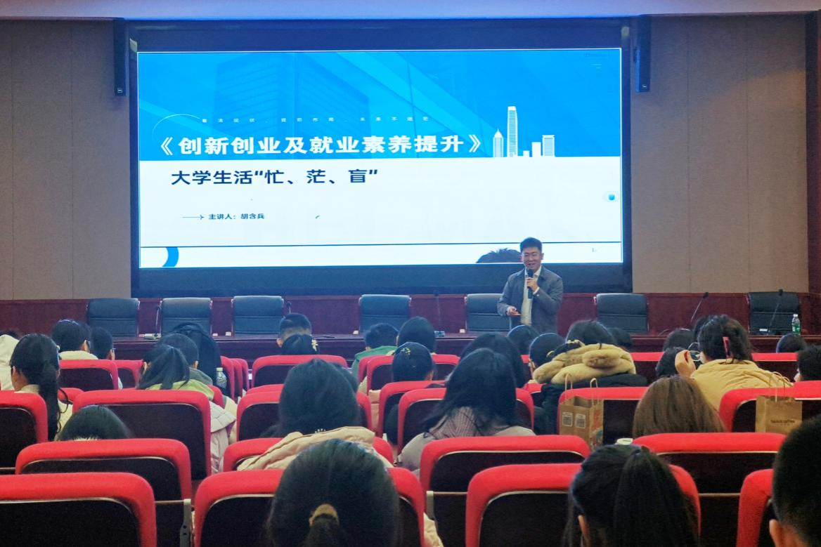 (通讯员 熊志惠 樊思乐)11月22日中午,伟德国际1949在报告厅举办创新创业及就业素养提升讲座。此次讲座由黑马科教集团创始人胡含兵担任主讲人,2023级及2024级部分同学参加讲座。