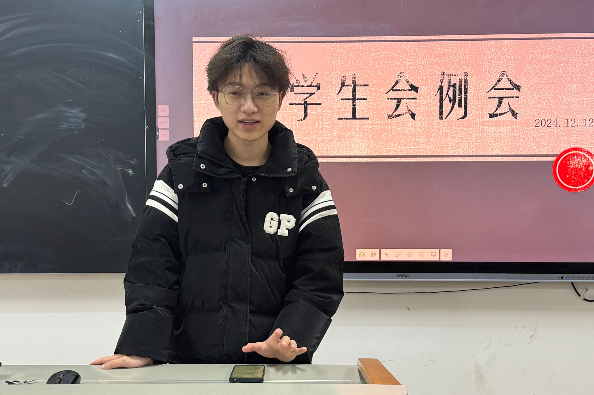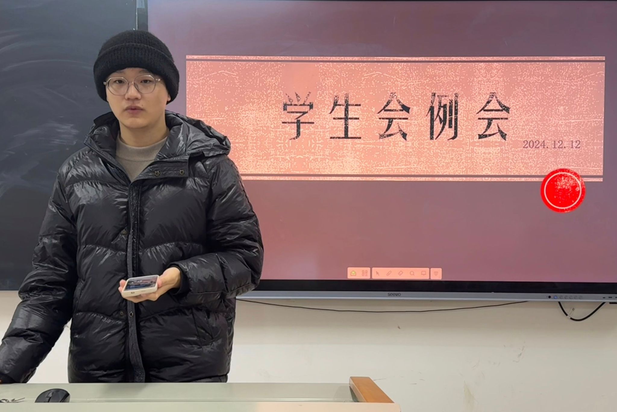 会议伊始,各部门依次汇报近期的工作情况以及未来的工作计划。其中,办公室已完成第343期快乐周末谈,正在进行第344期快乐周末谈的准备工作;宣传部已完成各类微推和说说的制作;健服部已完成健美操招新微推文案和男生节特辑微推文案的制作;文体部已完成青年志愿者宣传会活动;学发部已完成职业规划大赛观众的招募;权益部已完成长沙银行新生助学金、学业进步奖学金、公费师范生学业进步奖,北京笃学公益基金会奖学金通知的发布,以及资助宣传大使的评选;主席团成员范俊提醒成员们在寒假期间做好本学期活动的汇总。同时期末考试即将来临,各成员要做好期末复习。