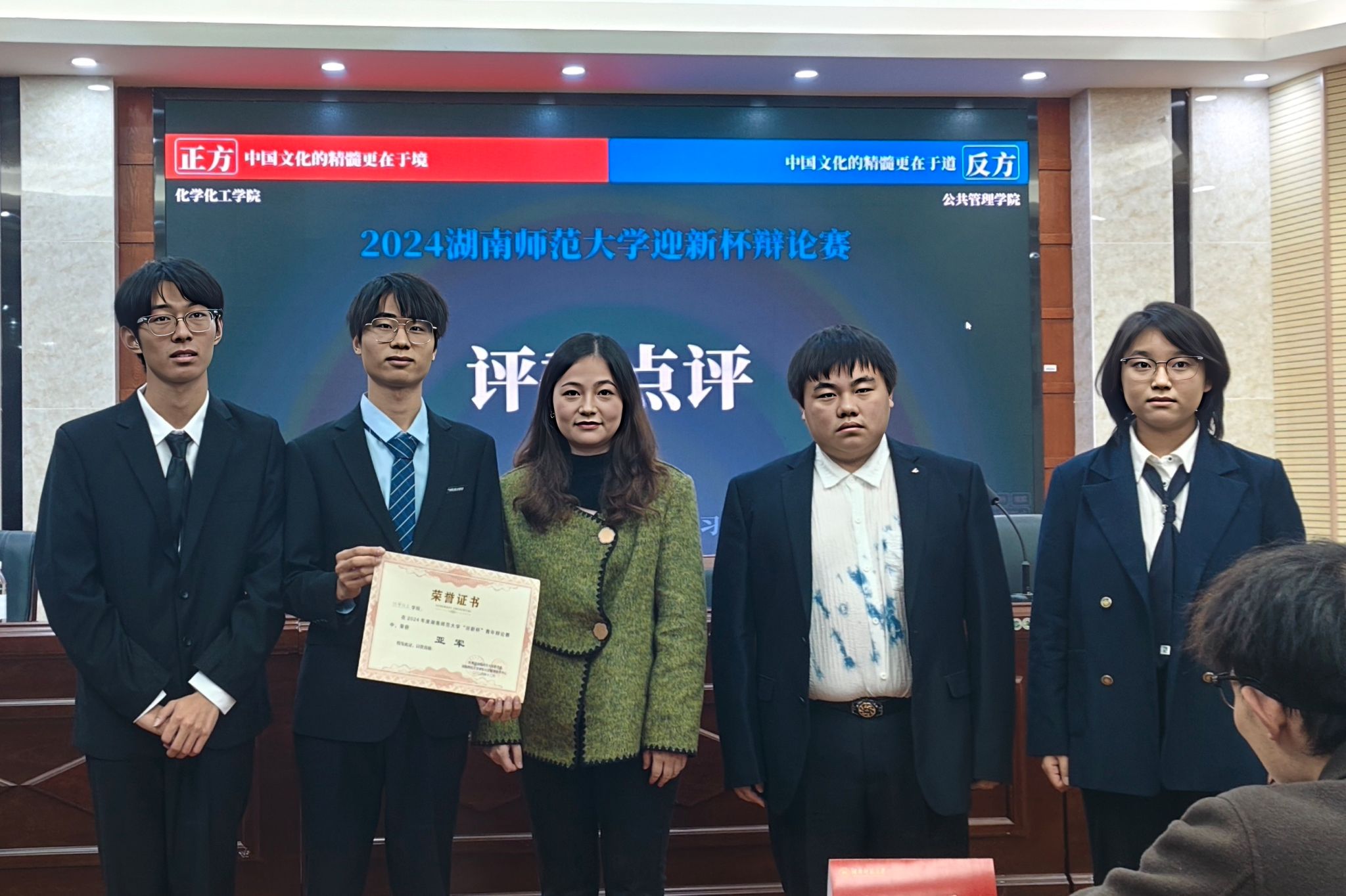 活动伊始,张馨怡简单介绍出席成员并宣布比赛开始,此次辩题为“中华文化的精髓更在于境/道。”正方化工院辩手开场立论,从中华古诗词、书画等角度论证己方观点,反方辩手从道与境的关系及对道和境的理解去论证己方观点。正赛环节结束后,研究生辩论队队长李英姿、研究生辩论队成员谢智益、2021级校辩论队队长肖皇三位评委分别对两支辩论队做出点评。评委们既肯定了双方辩手们的优秀才能,也指出了辩手们在辩论时存在的不足,并希望他们继续努力,不断优化。活动的最后,张馨怡宣布比赛结果,化工院辩论队荣获2024迎新杯辩论赛亚军,张婧为化工院辩论队颁奖,化工院辩论队与到场老师、评委合影留念。