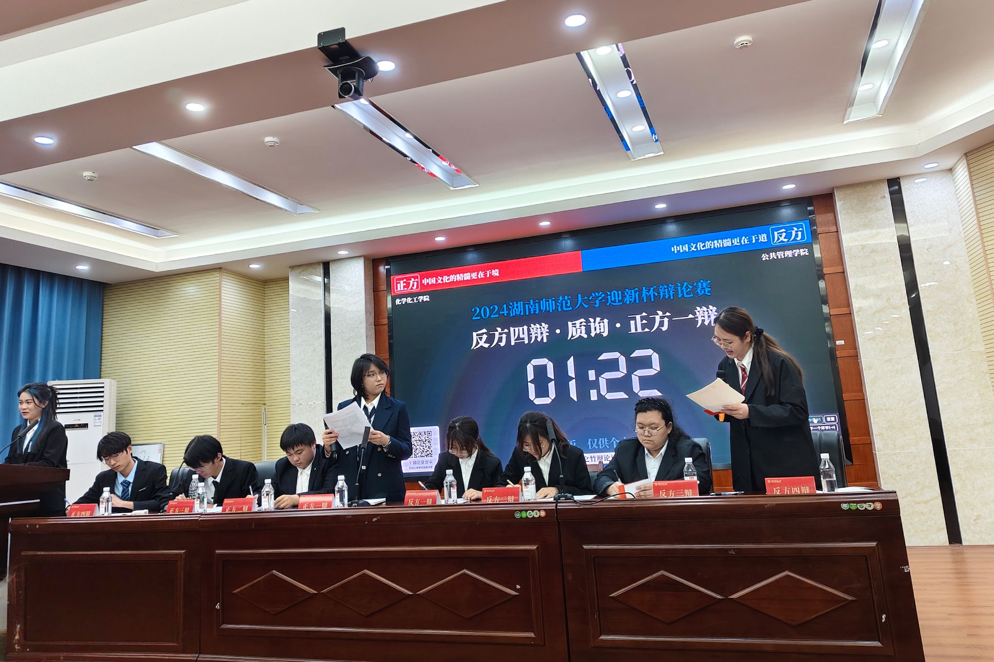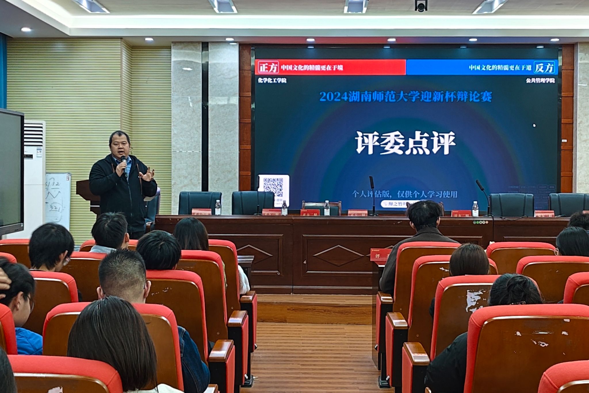 (通讯员 黄小耘)12月8日晚,伟德国际1949辩论队在景德楼学术报告厅参加2024迎新杯辩论赛决赛。2022级新闻与传播学院张馨怡担任此次活动的主持人。参与此次活动的成员有化工院院团委书记张婧,2024级辅导员兼辩论队指导老师朱伟鹏,2024级辅导员孙文涛,长沙市侨联青年委员会会长李文及各大高校参赛团。参赛双方分别是化工院辩论队和公共管理学院辩论队。