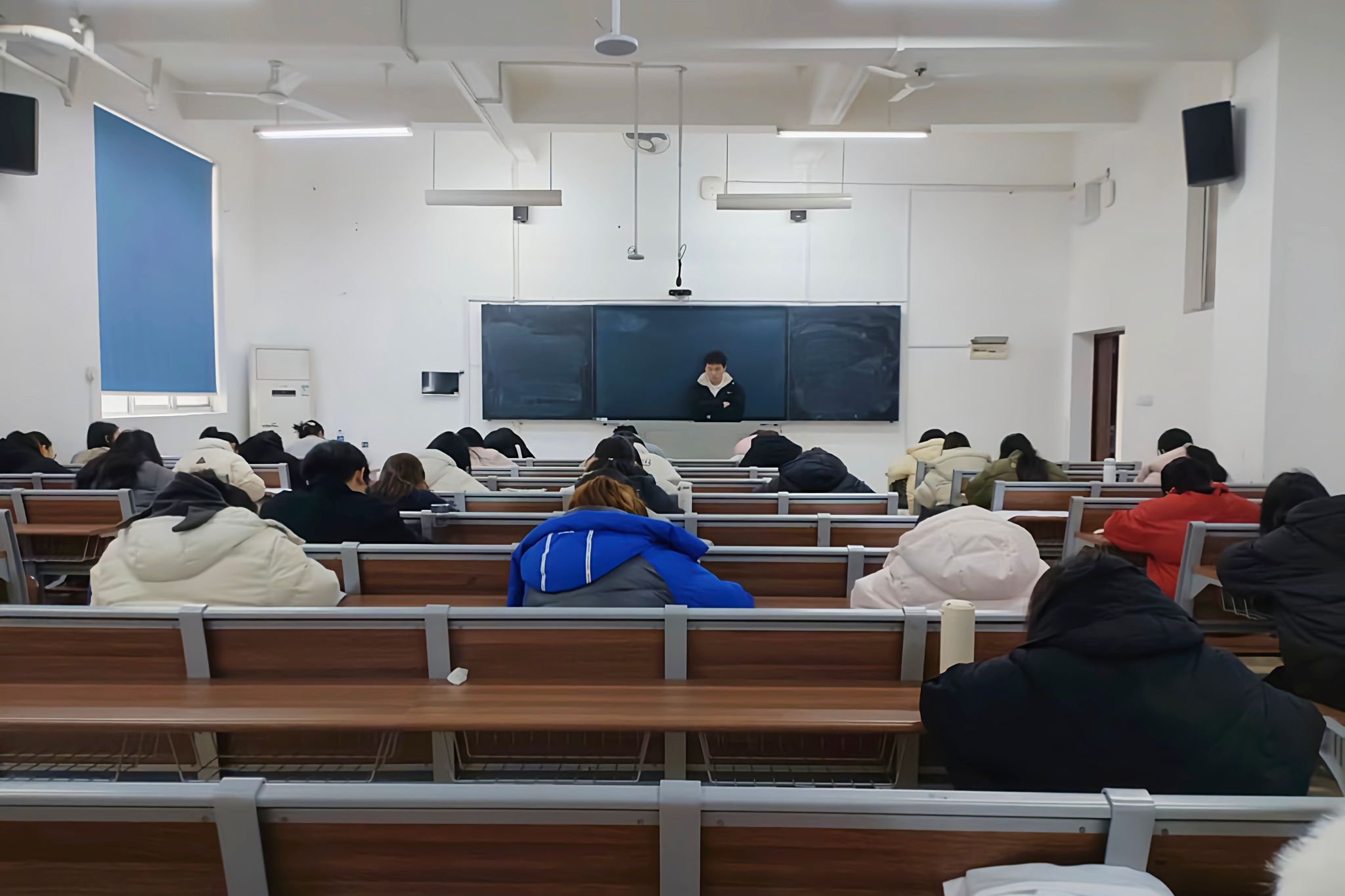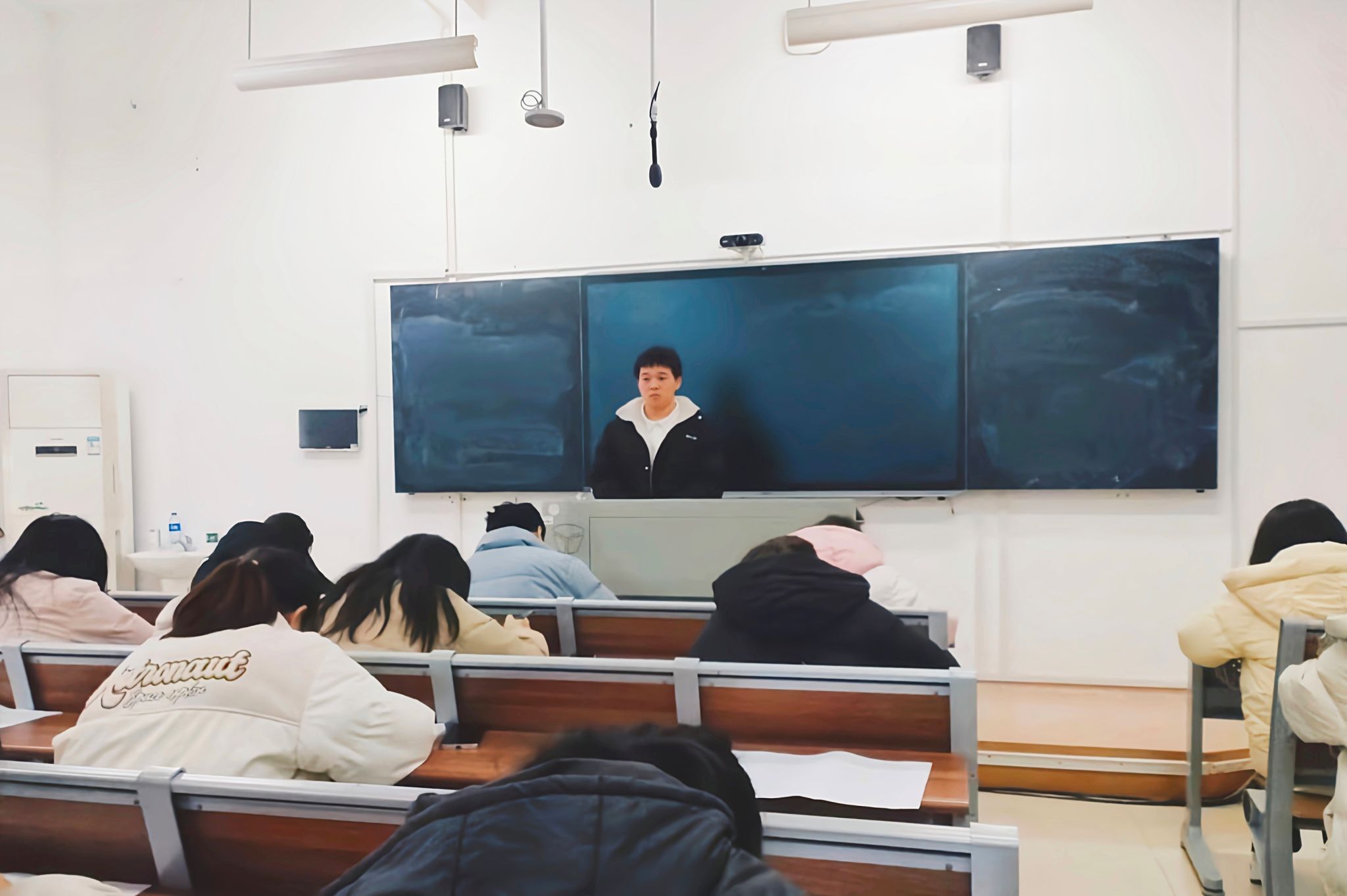 在竞赛过程中,试卷着重考察了权益理论知识、情景案例分析、日常知识等方面知识,题型主要包括单选题、多选题以及判断题。考试期间,各参赛者认真作答,权益部第一负责人高达和第二负责人赵子琪进行监考。初赛结束后,由学生会成员进行线下交错阅卷。