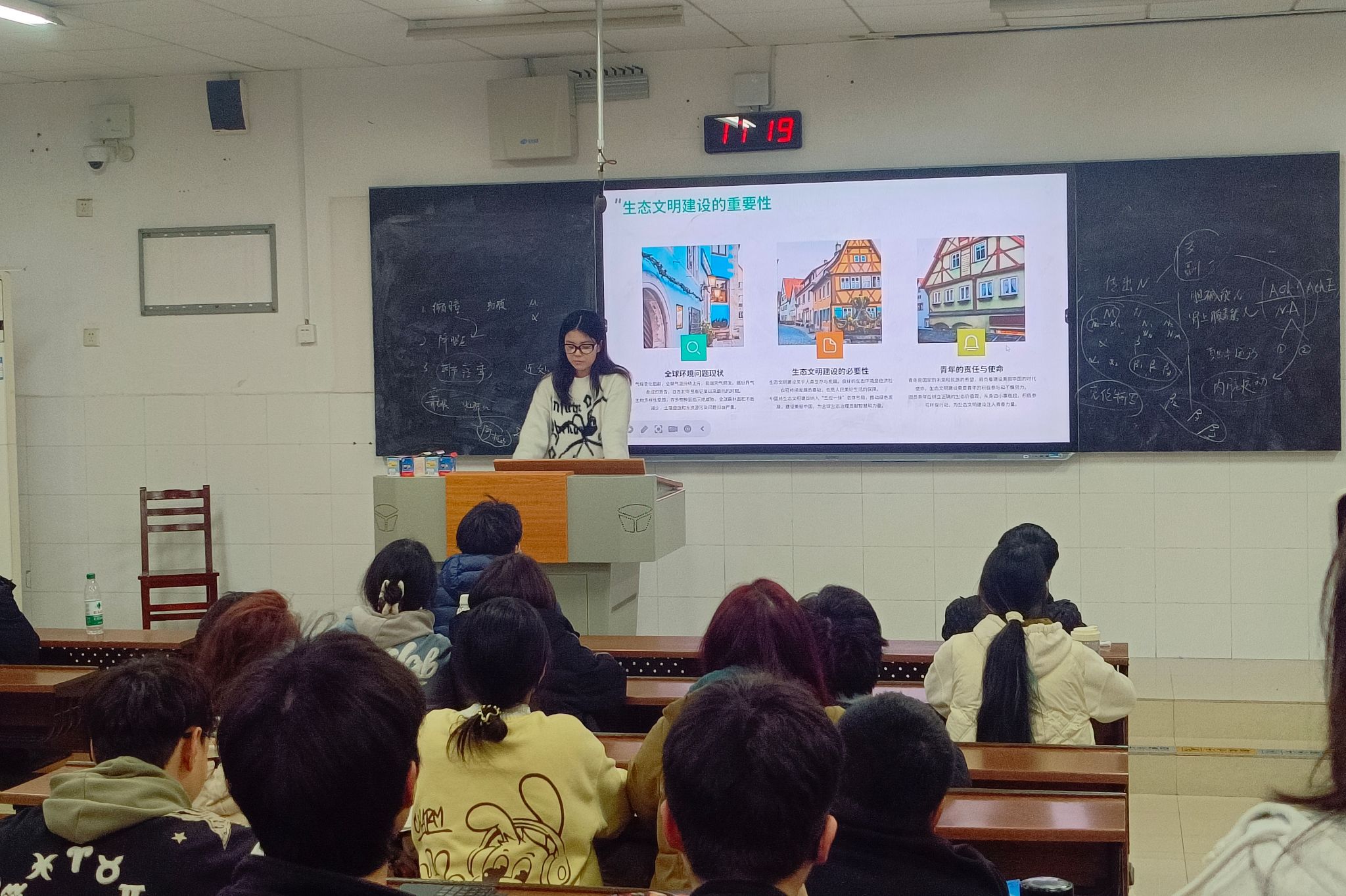 此次团日活动主要从四个方面来阐述,包括增强环保意识、践行绿色行动、改善校园环境和营造良好氛围。王彤以PPT讲解的形式向大家阐述了生态文明建设的重要性及青年应如何行动。同学们积极举手回答问题并发表自己对植树节的看法,相互学习,在向他人学习的过程中提升自我。全体成员一起观看有关植树节的视频,收获绿色的希望,感受成长的力量。