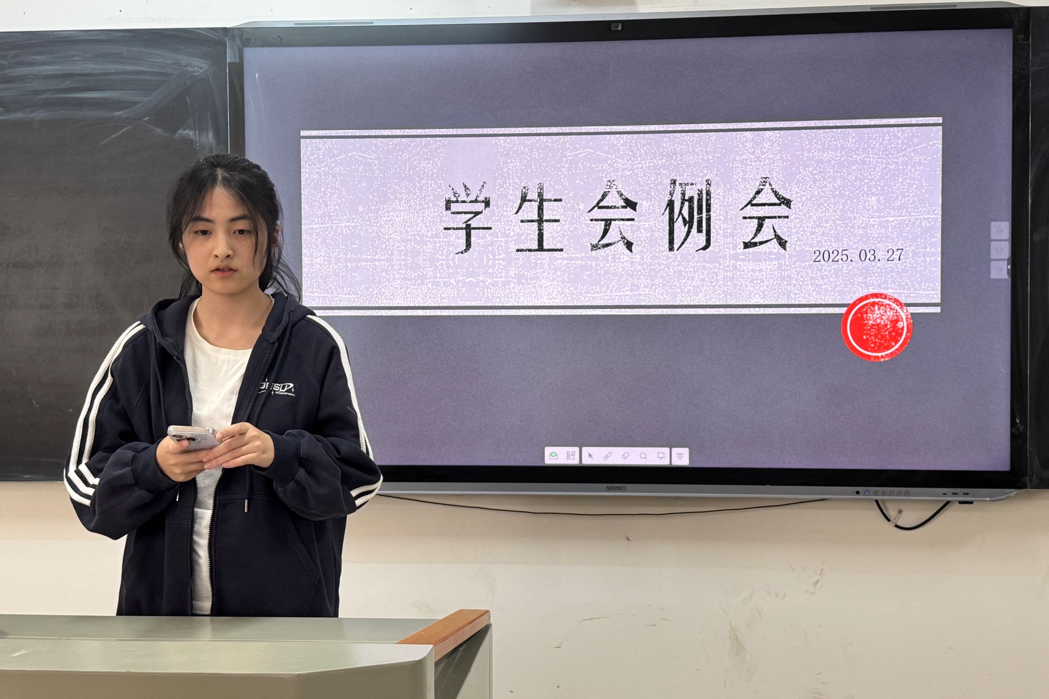 学生会成员聆听汇报