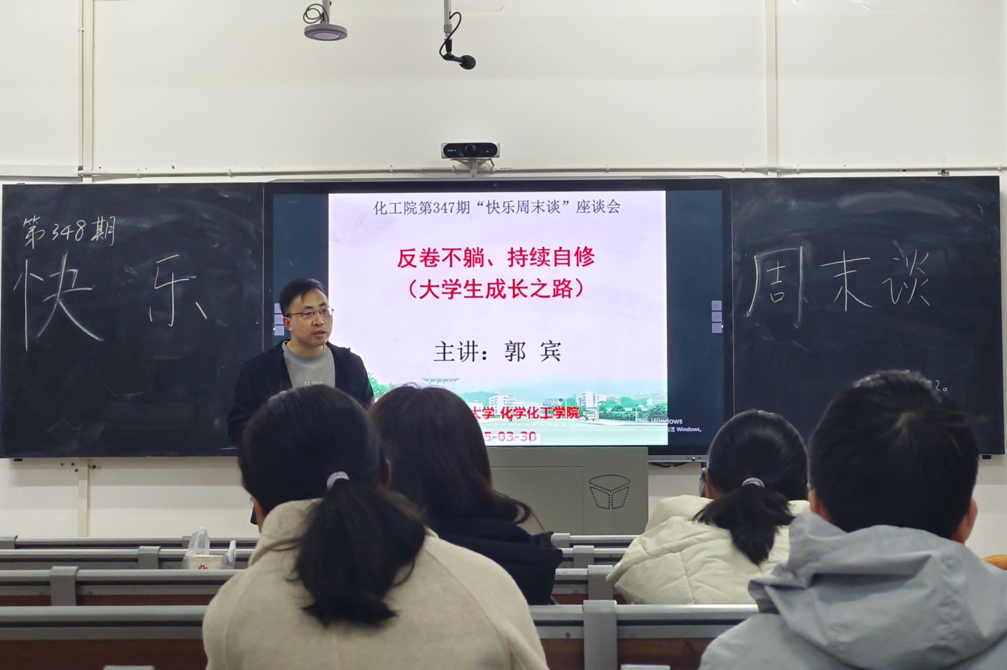 (通讯员 阮文婷)3月30日上午,化工院学生会办公室在化工楼117教室开展了第348期快乐周末谈活动,此次快乐周末谈活动的特邀嘉宾为化工院教授郭宾。此次活动中,郭宾以“大学生成长之路”为主题,引导同学们反卷不躺、持续自修。