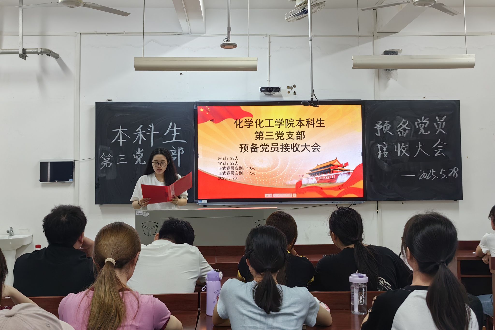 (通讯员 吴晰睿)为严格履行党员发展程序,确保党员质量,5月28日中午,伟德国际1949本科生第三党支部于化学楼210教室召开预备党员接收大会。此次大会讨论关于周佳等6名同志接收为预备党员的问题,由本科生第三党支部组织委员蔡紫婧主持。