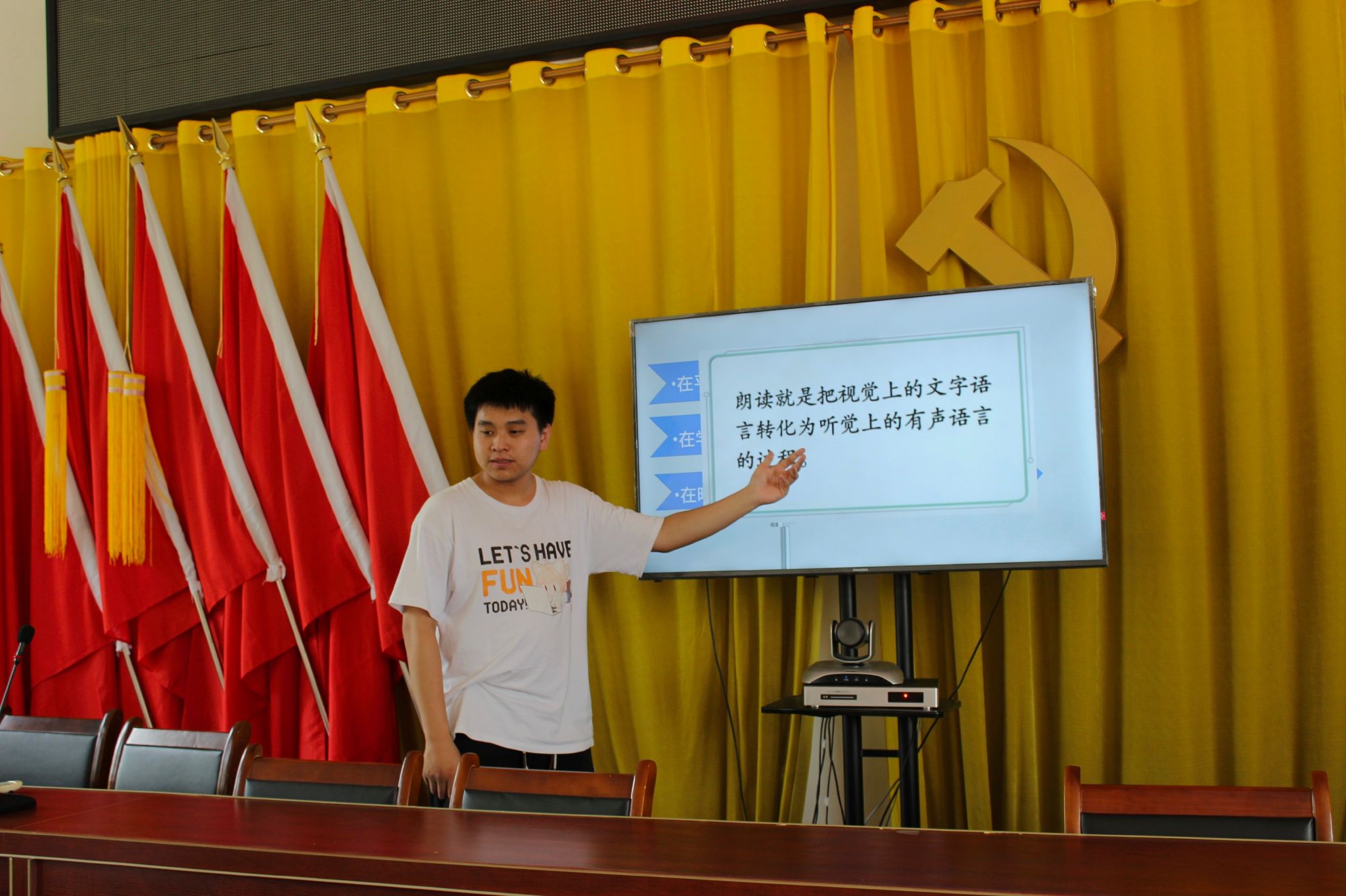 (通讯员 宁智康 罗佳铭)为了提高学生普通话水平,培养学生欣赏文字,感受作者情感的能力,7月9日下午,化工院“精勤耘梦,澧路兴乡”暑期社会实践团队在常德市澧县码头铺镇三观寺村开展朗读课程。