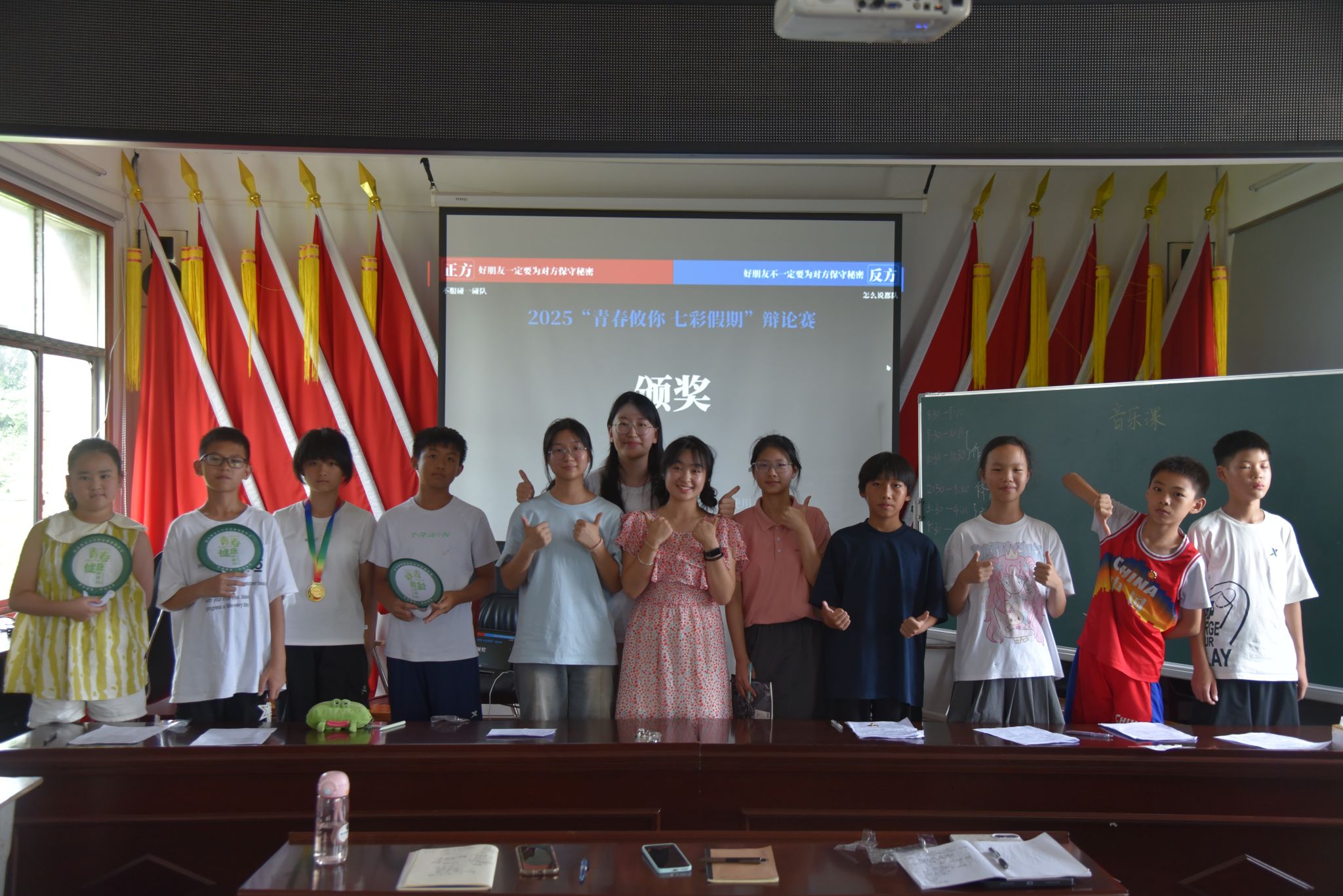 正式比赛中,初次登台的学生们略显紧张,在主讲人的引导下,学生迅速调整并进入状态。辩论赛围绕"好朋友一定或不一定要保守秘密"的主题,学生依据赛前查阅到的资料,开展了激烈的辩论。赛场上,双方辩手你来我往,妙语连珠。活动最后,评委对主题辩论赛进行点评,并对参赛成员进行颁奖。