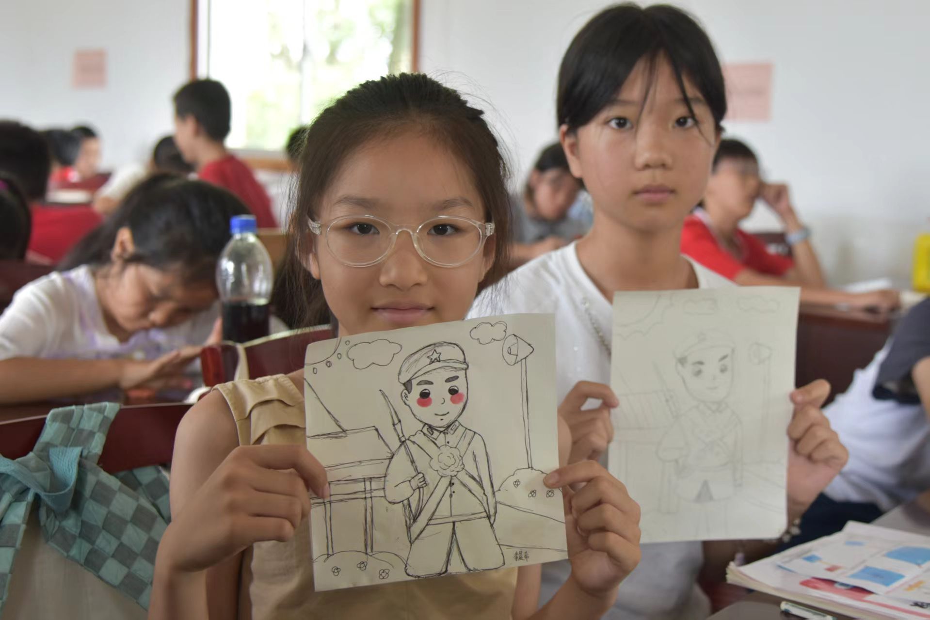 在抗美援朝精神学习中,主讲人引导学生回顾抗美援朝战争历史,学习志愿军英烈事迹。通过设置旗帜辨认、红色经典歌曲识别等游戏,在寓教于乐的“玩”与“学”深度交融中,让红色精神变得可触可感。课程设置“我心中的英雄”主题创作环节,学生动手画出心目中英雄人物形象,拼装升旗装置,在实践操作中深化对国旗国魂的理解与崇敬。