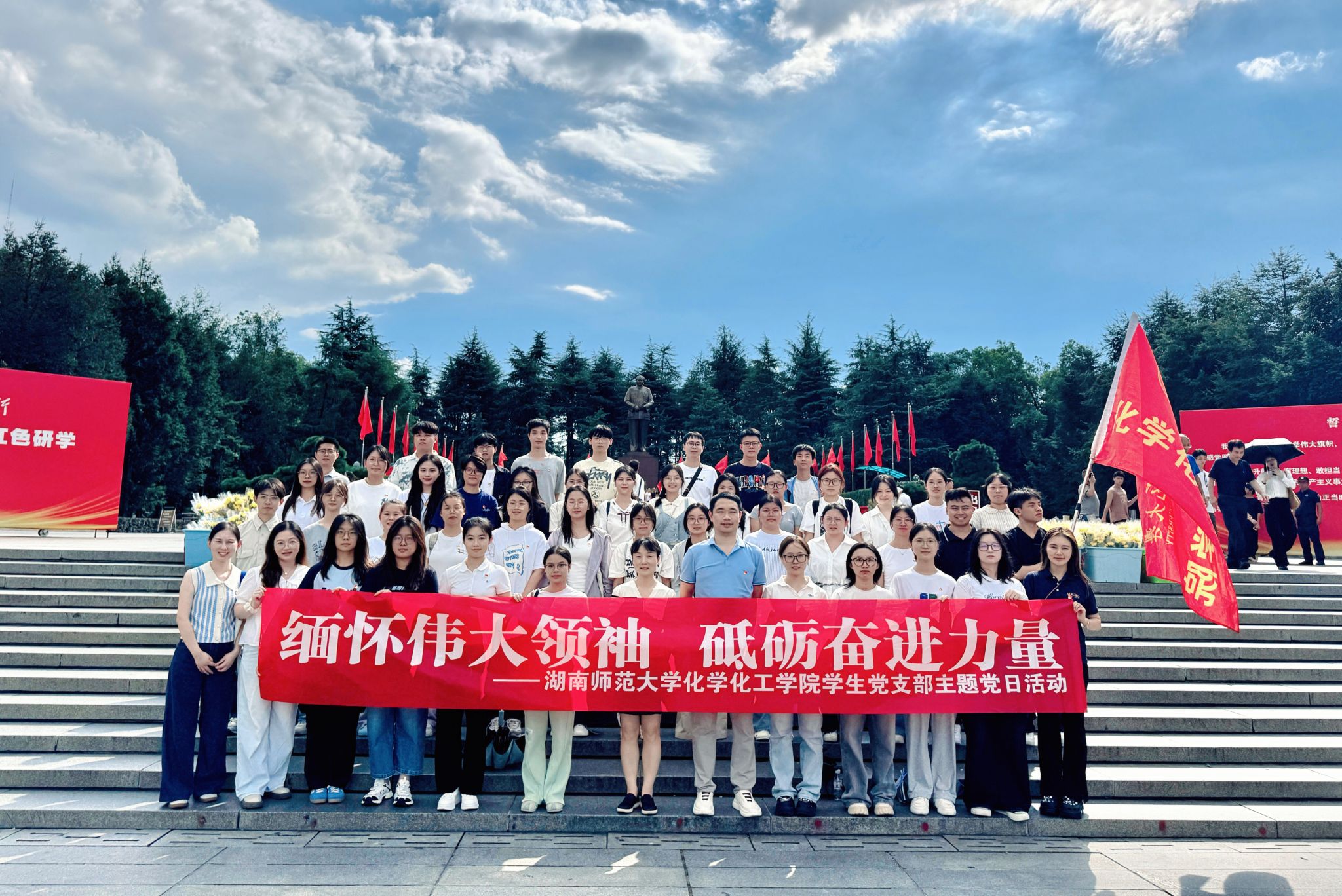 (通讯员 罗佳铭 谭伟维)为深入学习贯彻习近平新时代中国特色社会主义思想,弘扬红色文化、强化党员党性修养与学生干部责任担当,9月11日下午,化工院党委副书记周子虬、副院长谭蓉带领全体辅导员、研究生党支部党员、本科生党支部党员及主要学生干部赴韶山毛泽东同志铜像广场和故居开展红色主题教育活动。