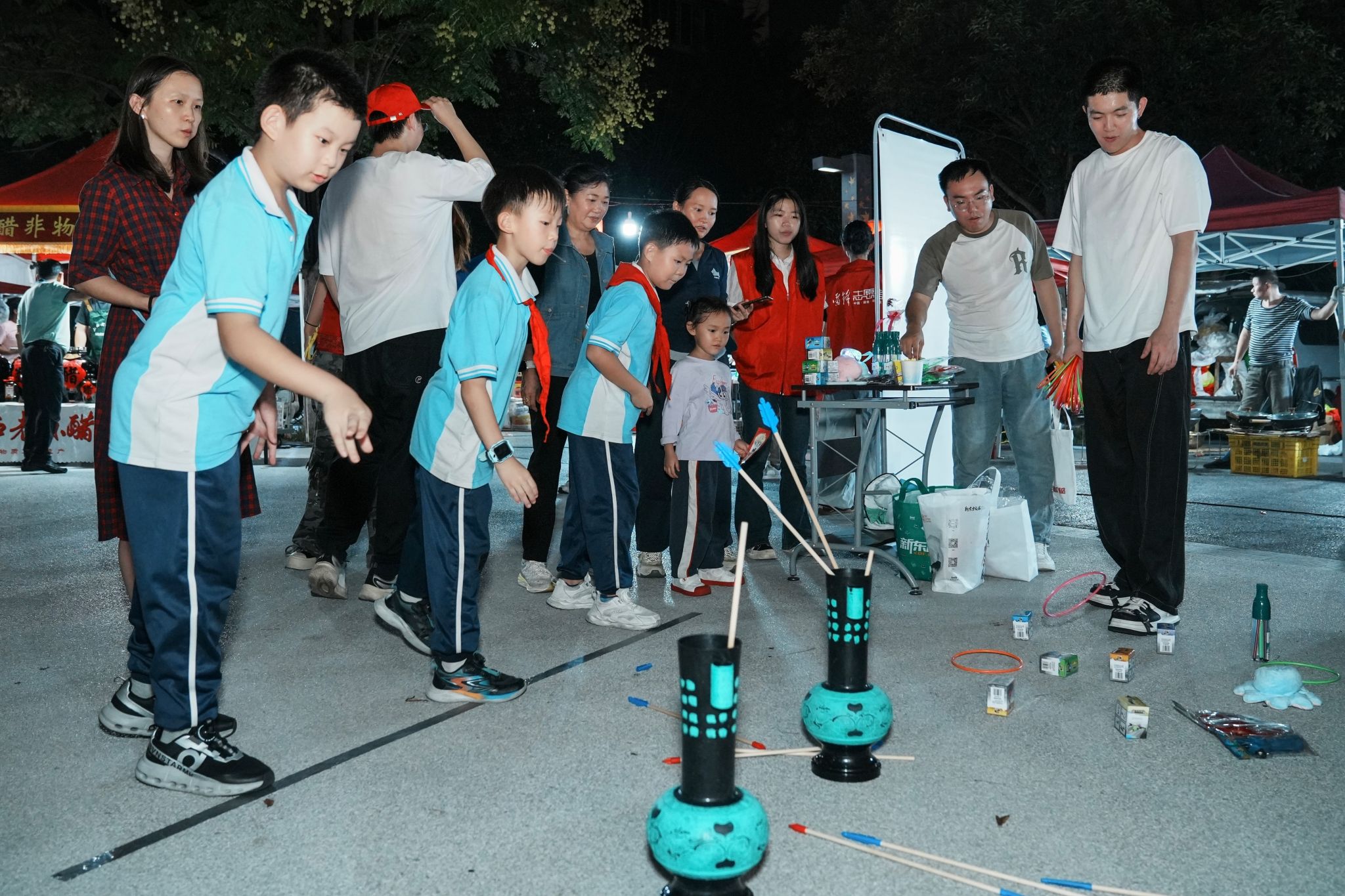 游园会环节设置了赏灯猜谜、趣味游戏及便民集市展销等内容,居民们在各种体验活动中交流互动,共同迎接国庆与中秋的到来。