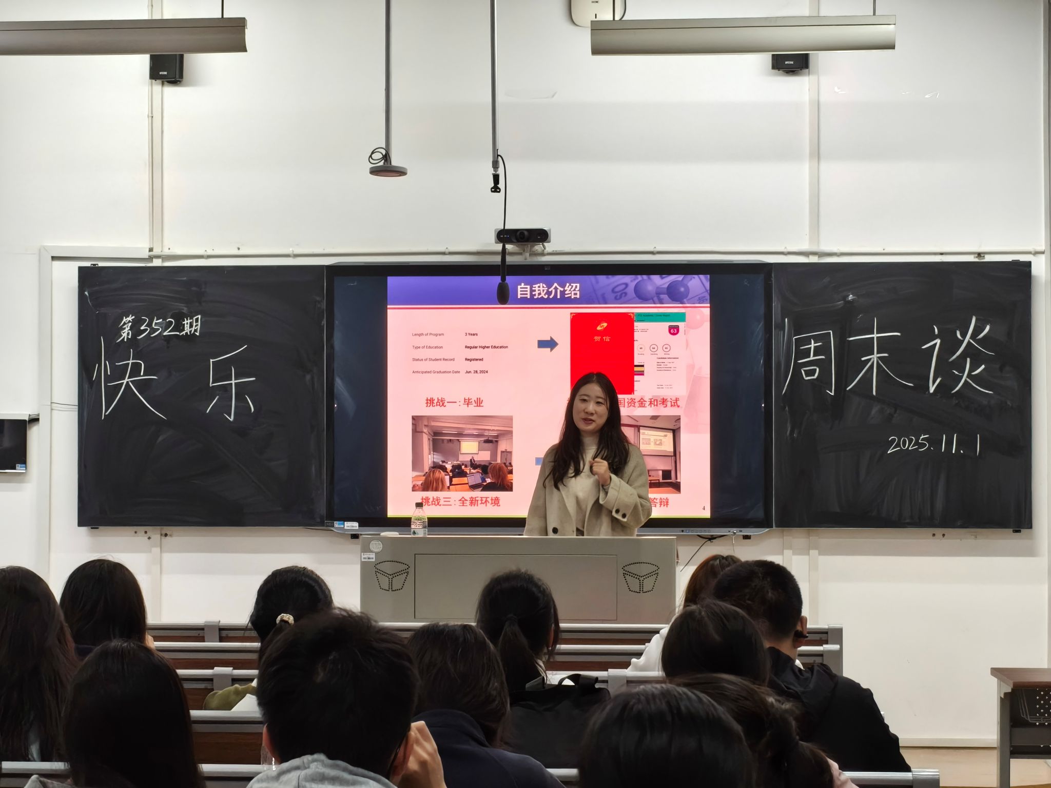 (通讯员 张艾平 贺俊杰)11月1日上午,我院学生会办公室在化学楼117教室组织开展第352期快乐周末谈活动,邀请化工系教师尹一涵进行主讲。