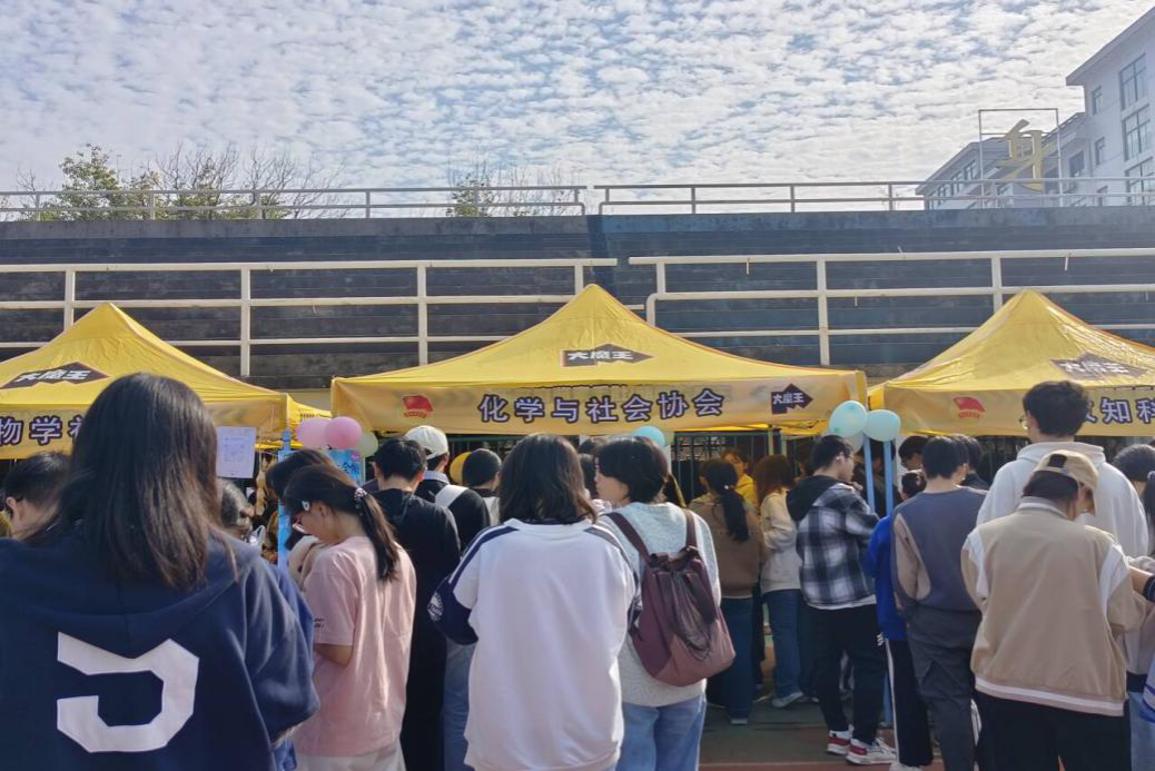 (通讯员 陈紫涵)11月16日上午,我院化学与社会协会在北院田径场参与第26届百团大战社团招新暨第三届社团文化集市活动。化协理事长陈紫涵带领理事会成员有序推进此次活动各项事宜。