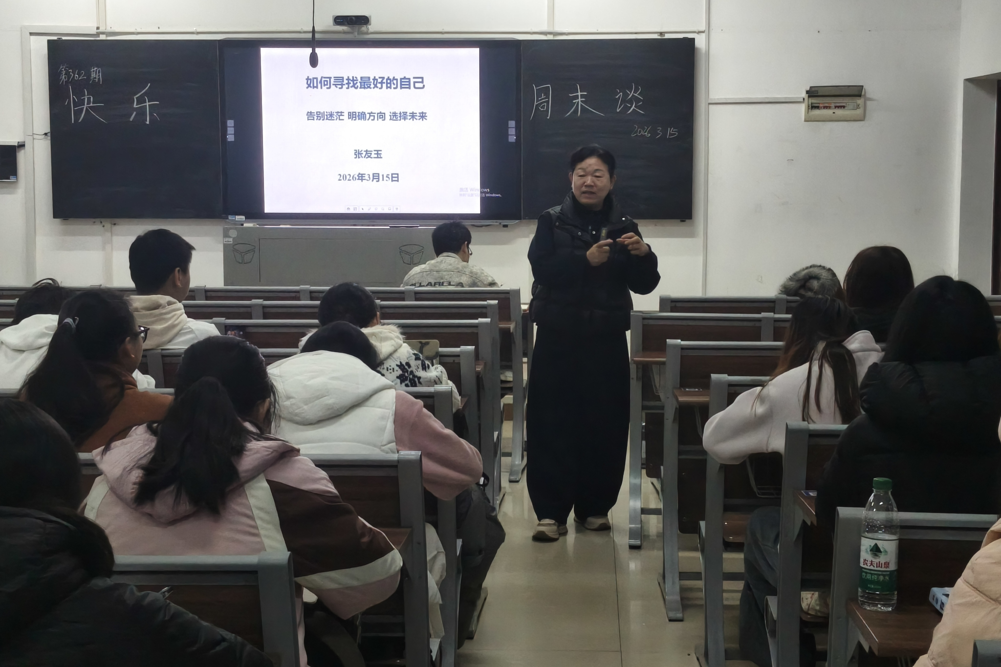 (通讯员 张艾平)3月15日上午,我院在化学楼117教室组织开展第362期快乐周末谈活动。此次活动邀请我院化学系教授张友玉老师担任主讲人,部分23、24、25级同学参与。