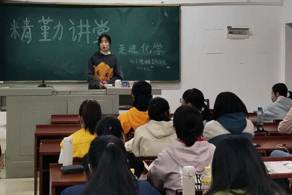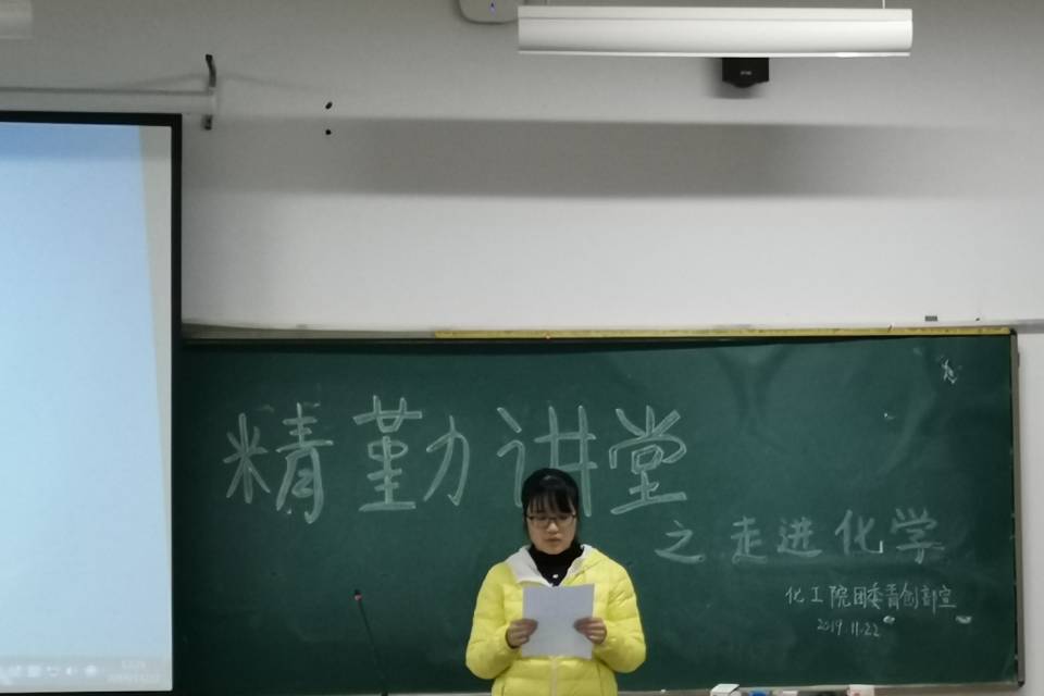 (通讯员 龙俊豪)11月22日中午12时30分伟德国际1949团委青创部在化工院117教室举办了精勤讲堂之“走进化学”,此次讲堂由2016级资源循环科学与工程专业郭萌萌主讲,17级,18级及19级部分同学参加了此次活动。